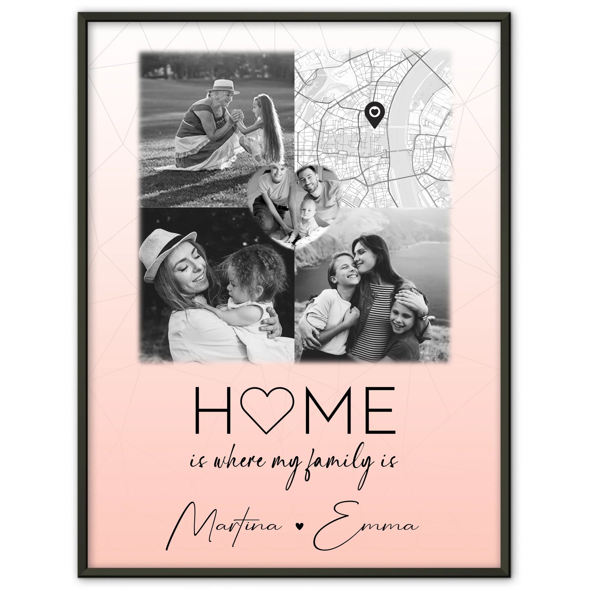 Zuhause ist kein Ort, sondern ein Gefühl. Mit unserem einzigartigen Familienposter Personalisiert Mit Namen 3 Fotos und 1 Herz Foto und Karte Where My Family Is fängst du genau dieses Gefühl ein und schaffst eine bleibende Erinnerung für deine Liebsten. Der wunderschöne Spruch Home is where my family is umrahmt eure schönsten Momente und macht dieses Poster zu einem echten Hingucker und einem emotionalen Geschenk für alle Familien Mitglieder. Egal zu welchem Anlass, mit diesem persönlichen Kunstwerk zeigst du, was wirklich zählt: die Familie.