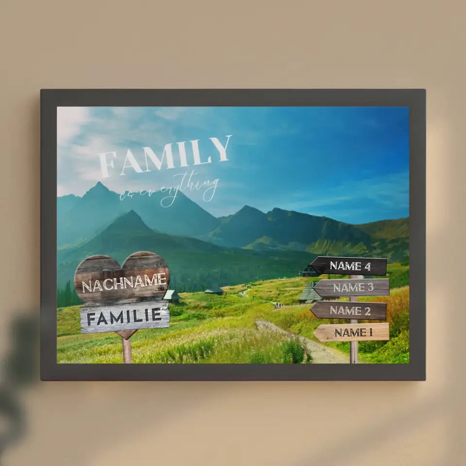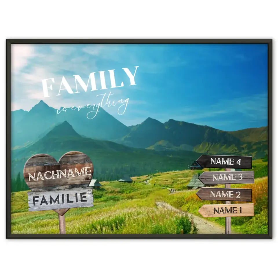 Familienposter personalisiert Wegweiser Alpen Weide mit 9 Namen & Familienspruch