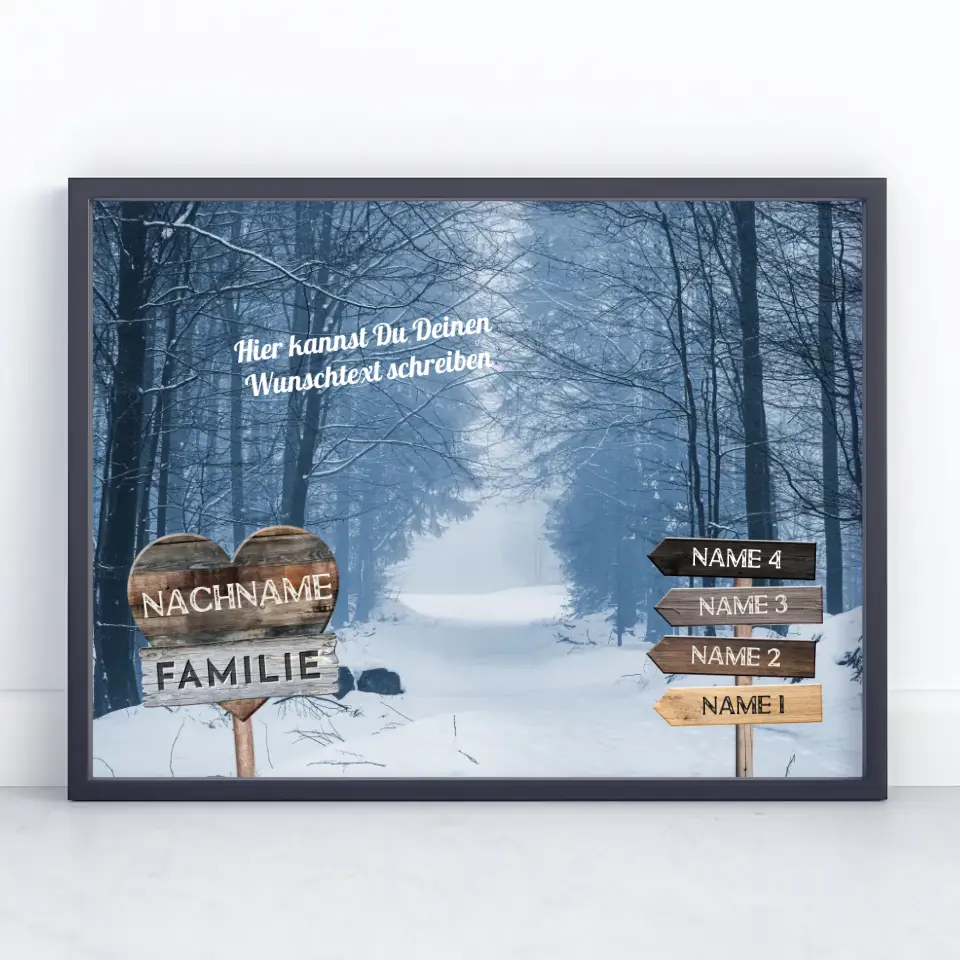 Familienposter personalisiert Wegweiser Schnee Allee & Wunschtext