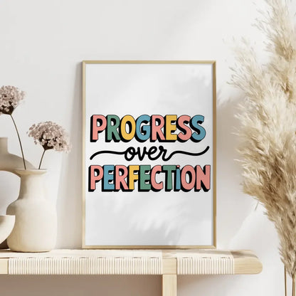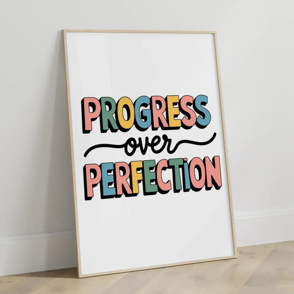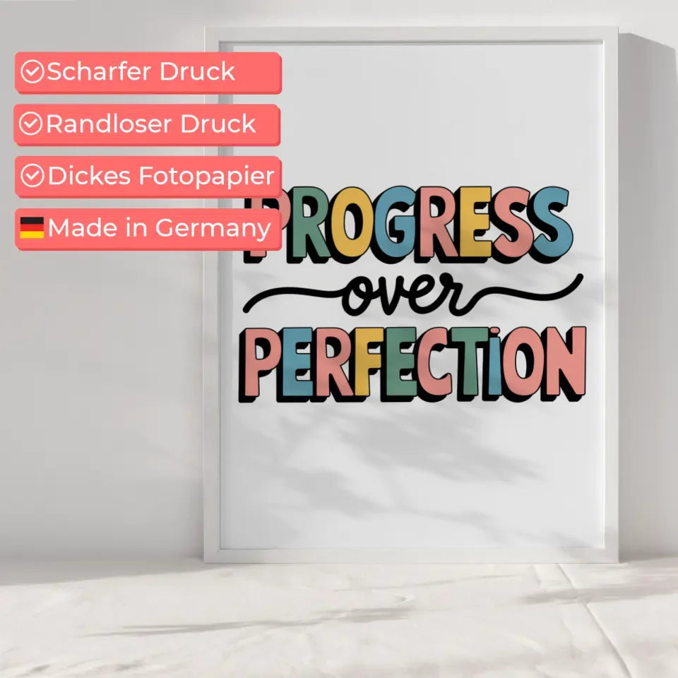 Farbenfrohes Poster mit dem Spruch Fortschritt statt Perfektion