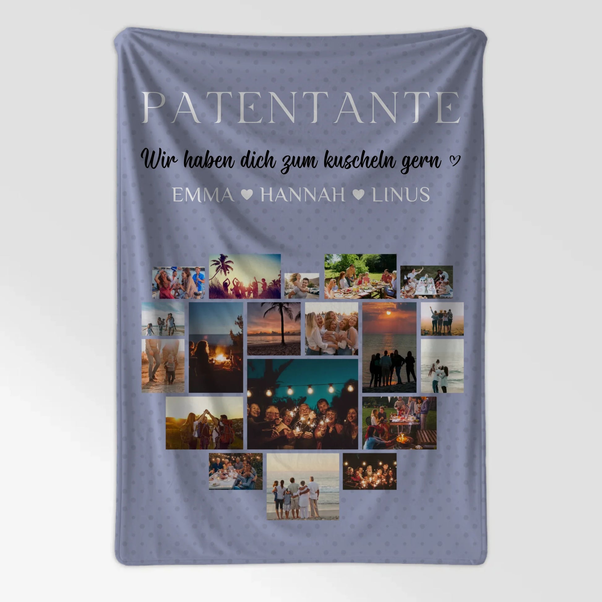 Sichere dir jetzt deine individuelle Kuscheldecke Personalisiert, überrasche deine Patentante mit einem ganz besonderen Geschenk und zeige ihr mit einer einzigartigen Fotocollage, wie wichtig sie dir ist!