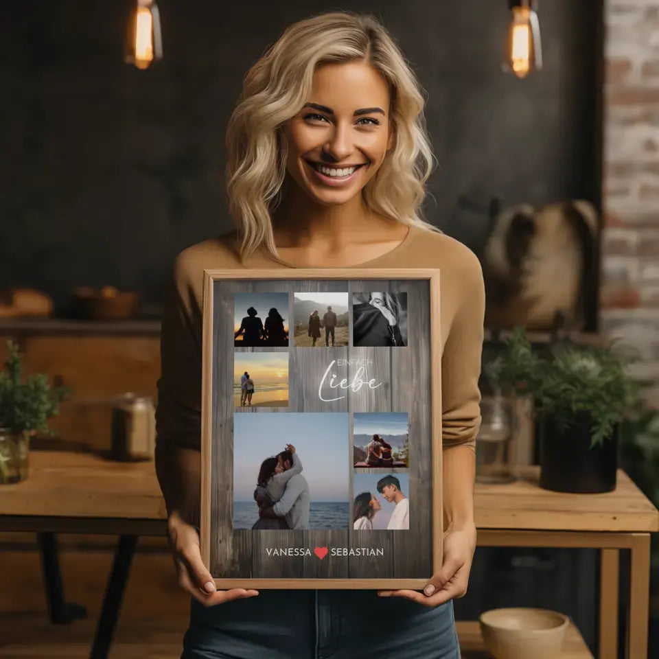 Unser Foto Collage für Freundin Hell Holz Style Mit Eigenem Spruch & Fotos & Namen