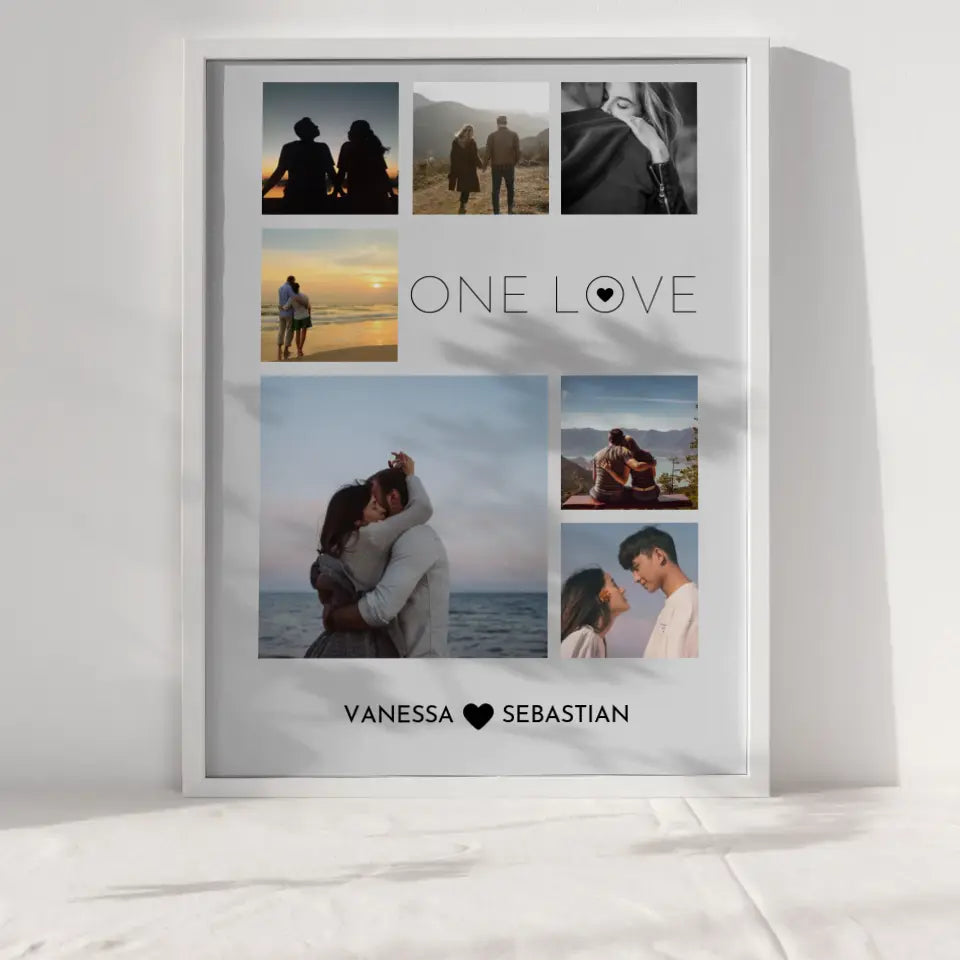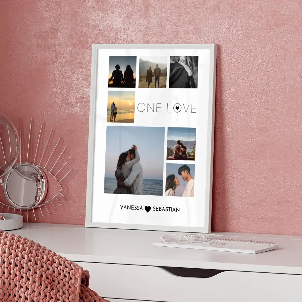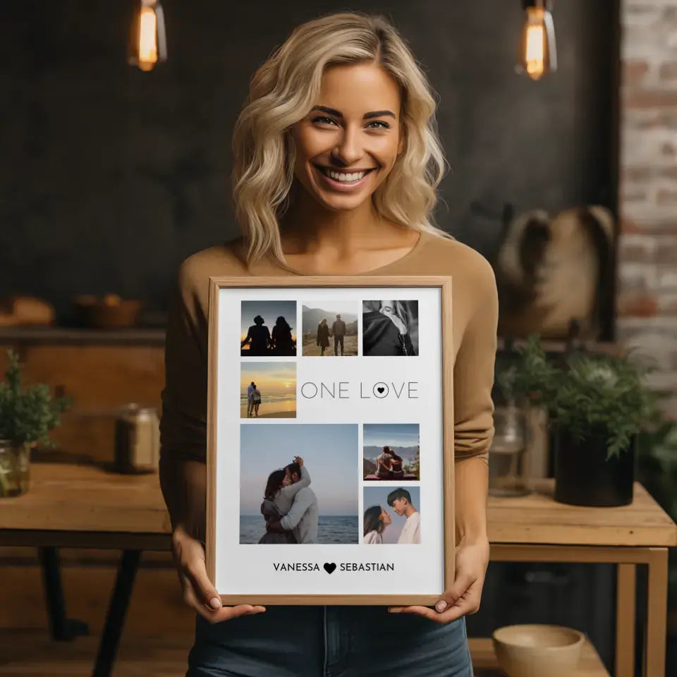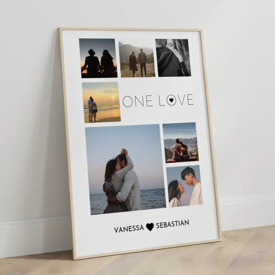 Du würdest gerne etwas einzigartiges schenken? Dann ist unser Foto Collage für Freundin One Love Mit Fotos & Namen das perfekte personalisierbare Geschenk.