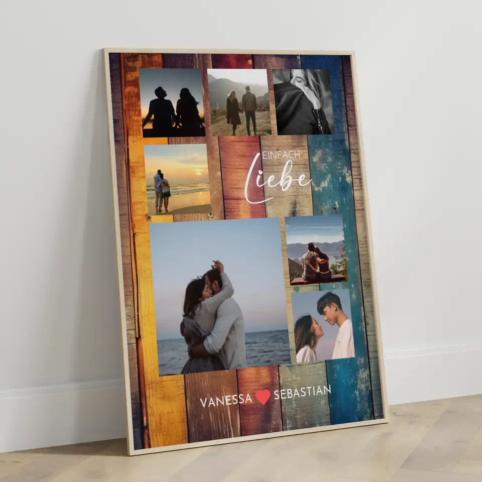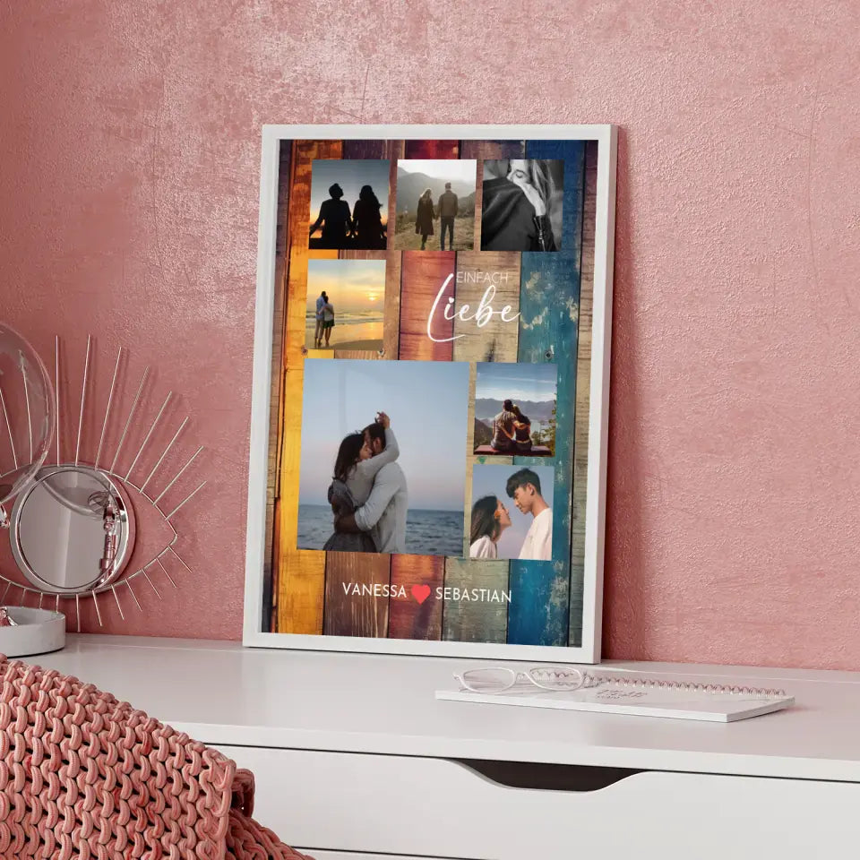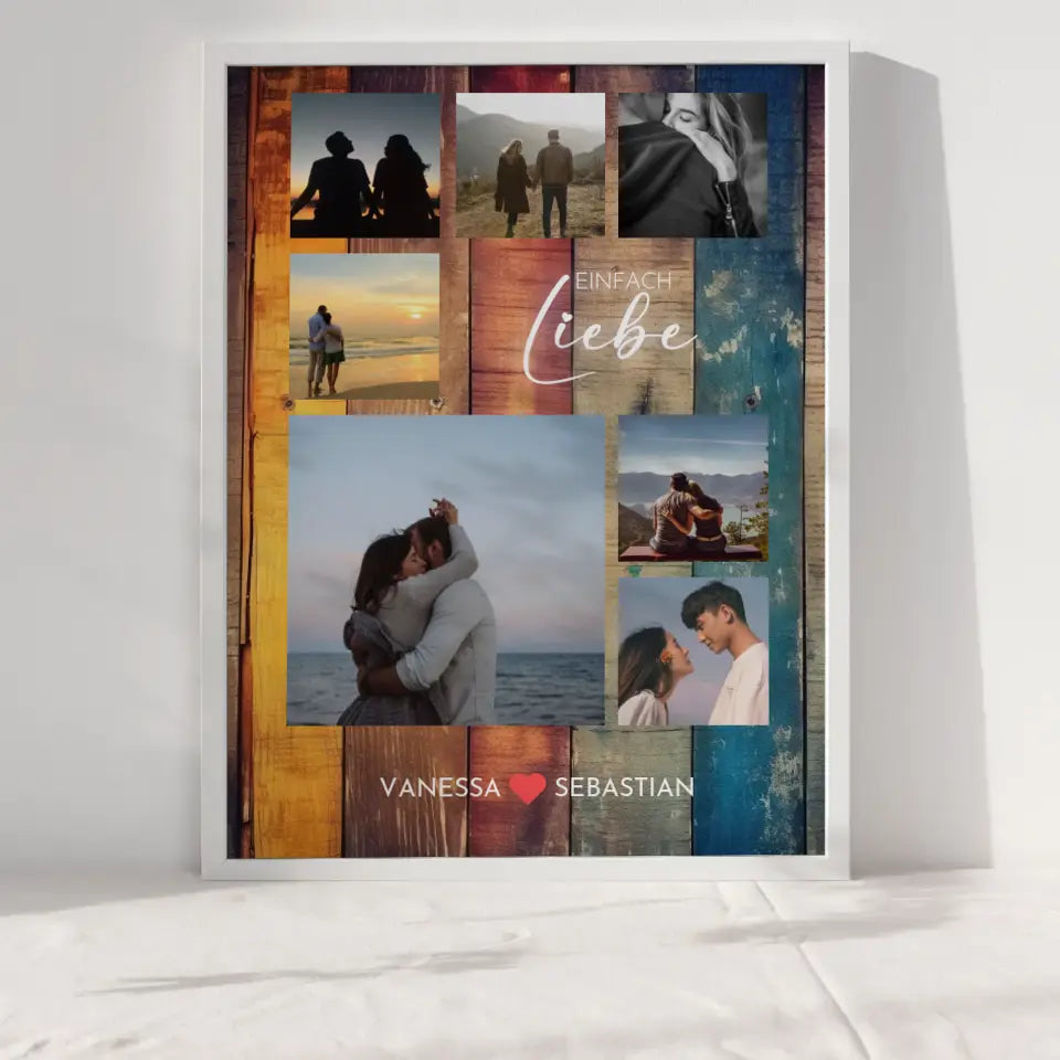 Unser Foto Collage für Freundin Vintage Holz Style Mit Eigenem Spruch & Fotos & Namen