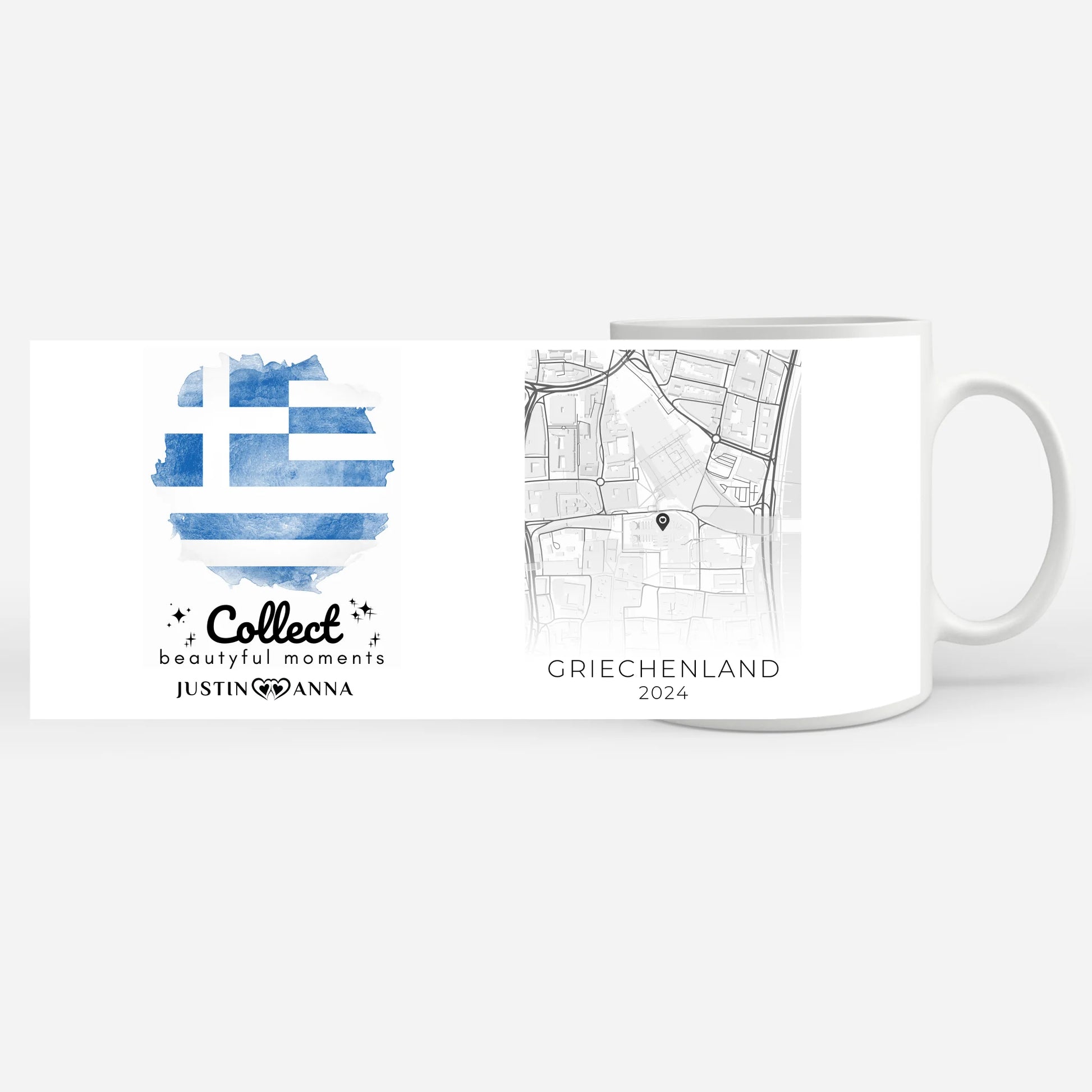 Foto Geschenk Tasse für Paare Urlaub Erinnerung Griechenland Stadtkarte