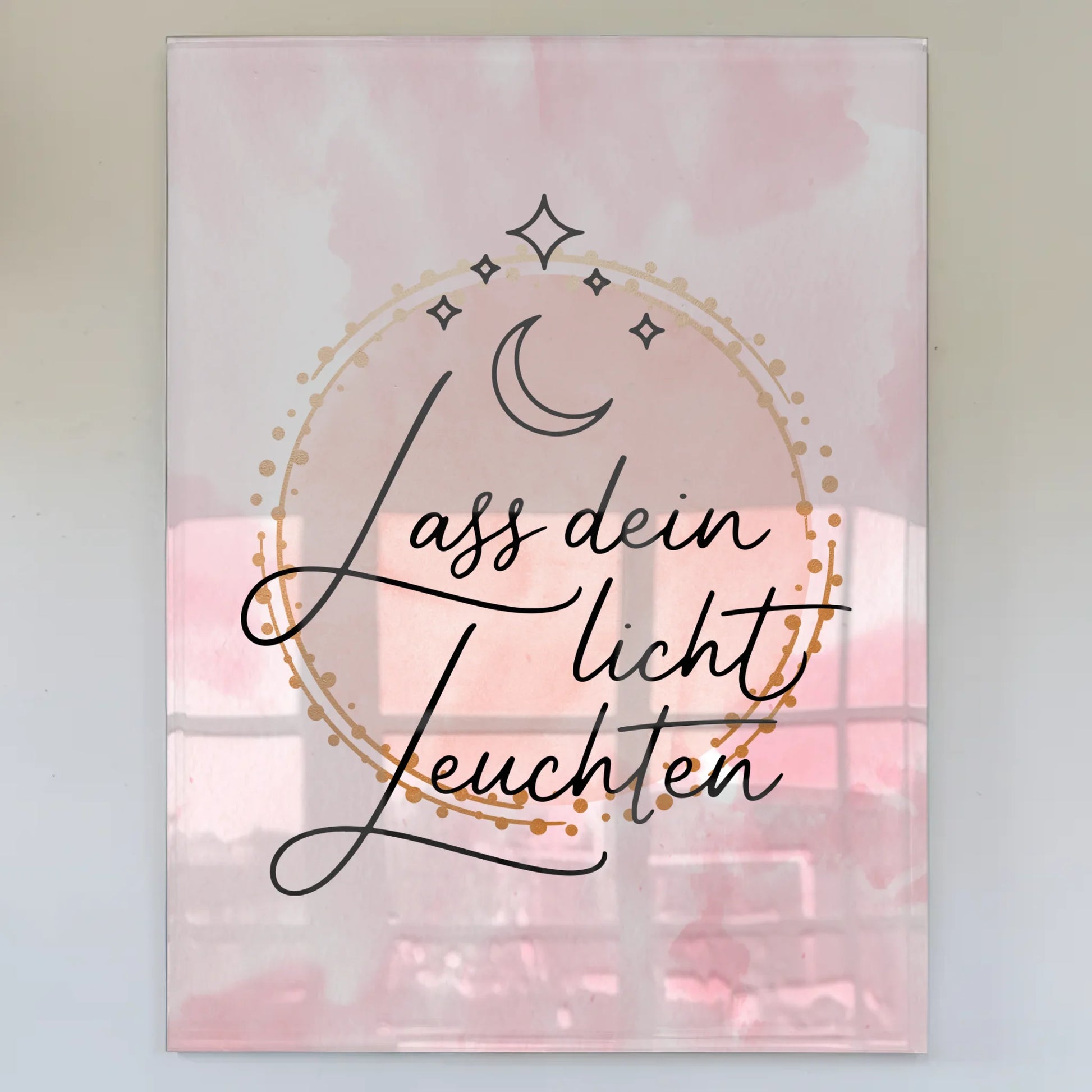 Lass deiner KreativitĂ€t freien Lauf und gestalte das Hintergrundbild ganz nach deinen WĂŒnschen. Die hochwertige Verarbeitung des Acrylglases sorgt dafĂŒr, dass die Farben strahlen und der Spruch 'Lass dein Licht leuchten' perfekt zur Geltung kommt. Diese tĂ€gliche Affirmation erinnert dich daran, positiv zu bleiben und deine Ziele zu verfolgen.