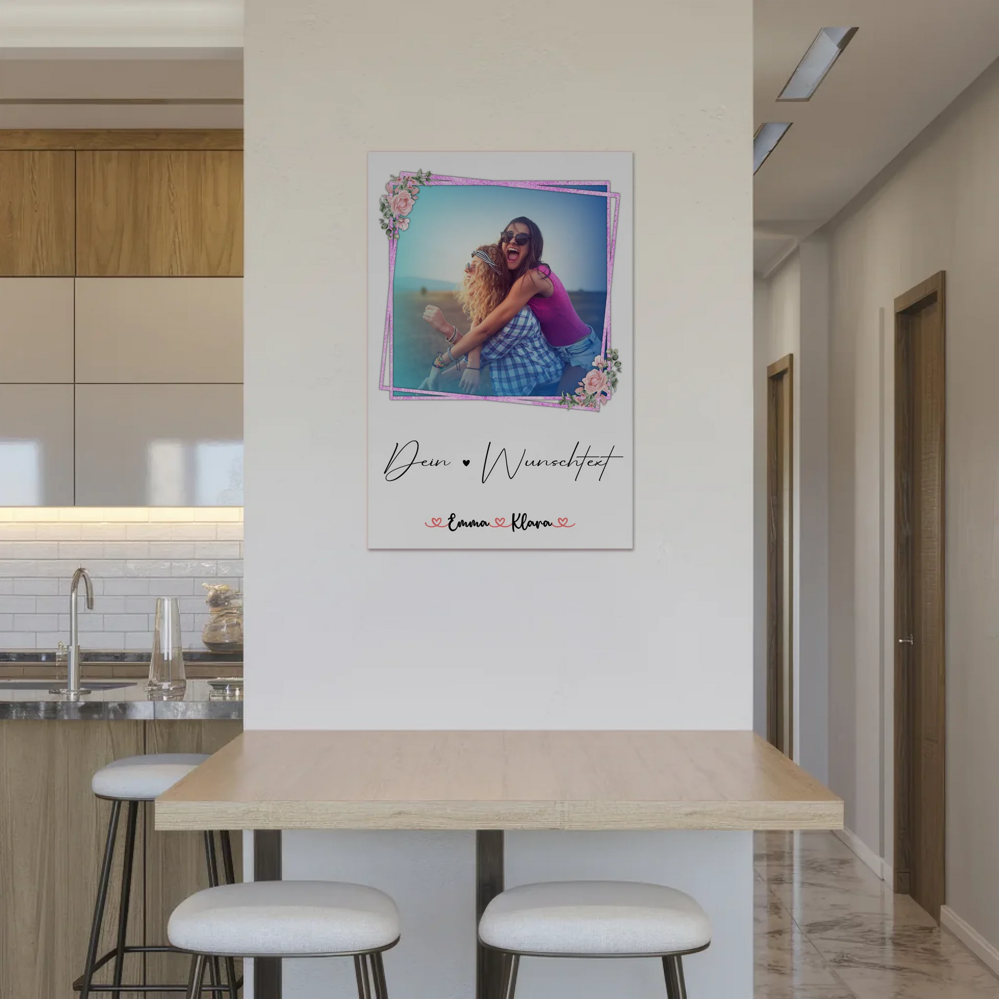 Fotoboard beste Freundinnen mit 1 Foto, Hintergrundbild, Namen & eigener Wunschtext
