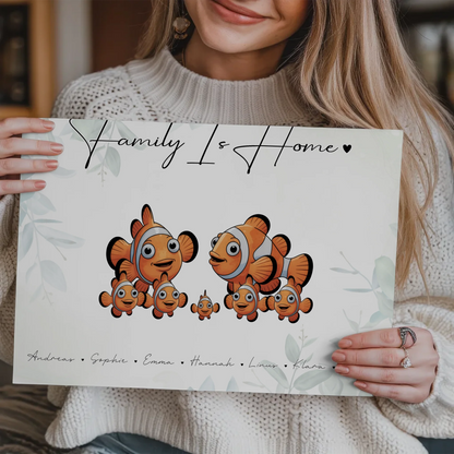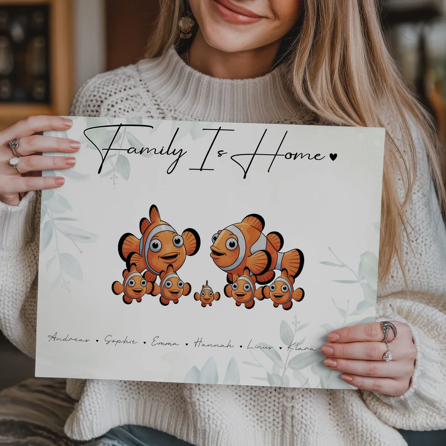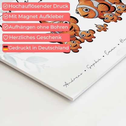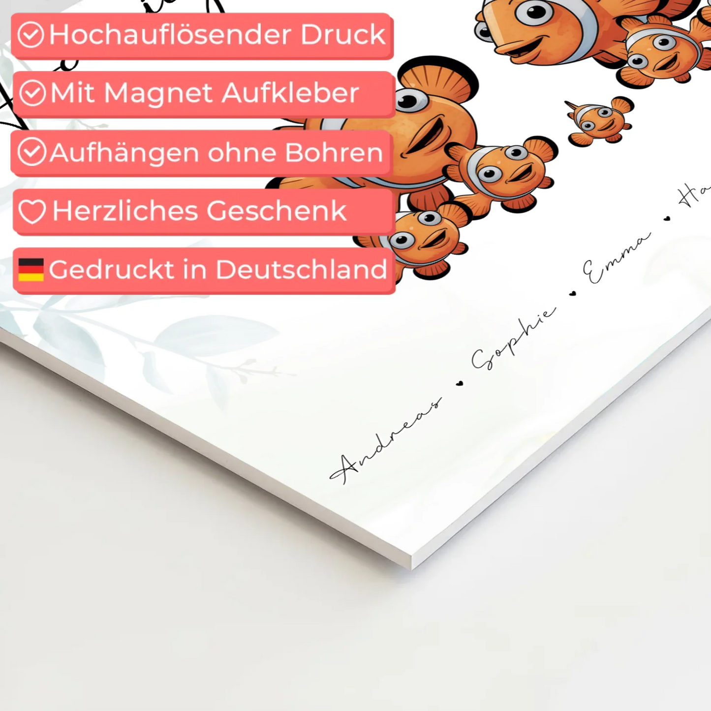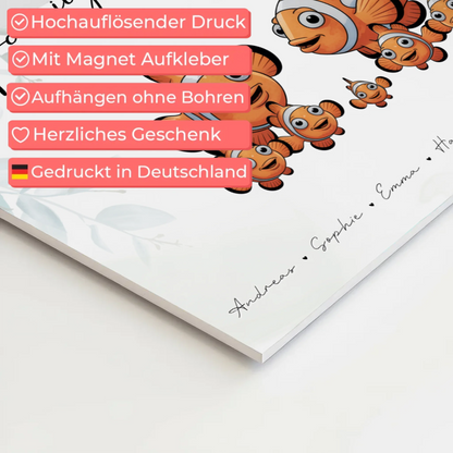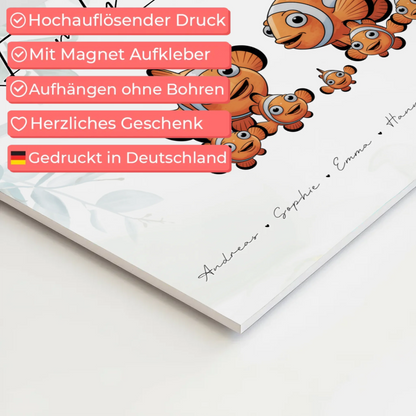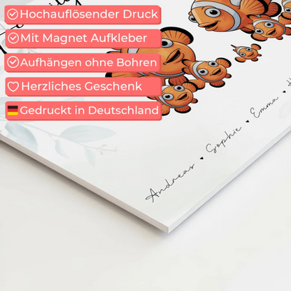 Fotoboard Familie Namen Clownfisch Familienporträt Geschenk für Papa Mama Oma Opa