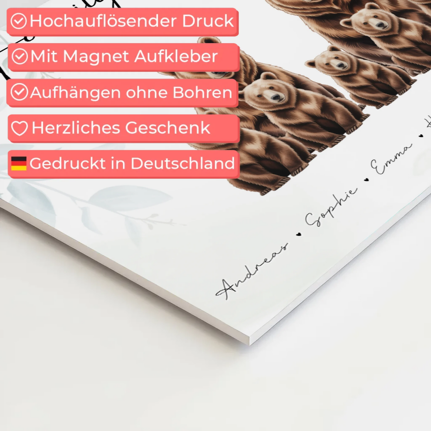 Fotoboard Family Braunbären Familienporträt Geschenk für Papa Mama Oma Opa
