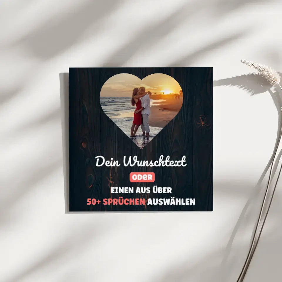 Fotoboard Herz Foto Holz Fotokachel Mit 1 Foto & Spruch oder Wunschtext