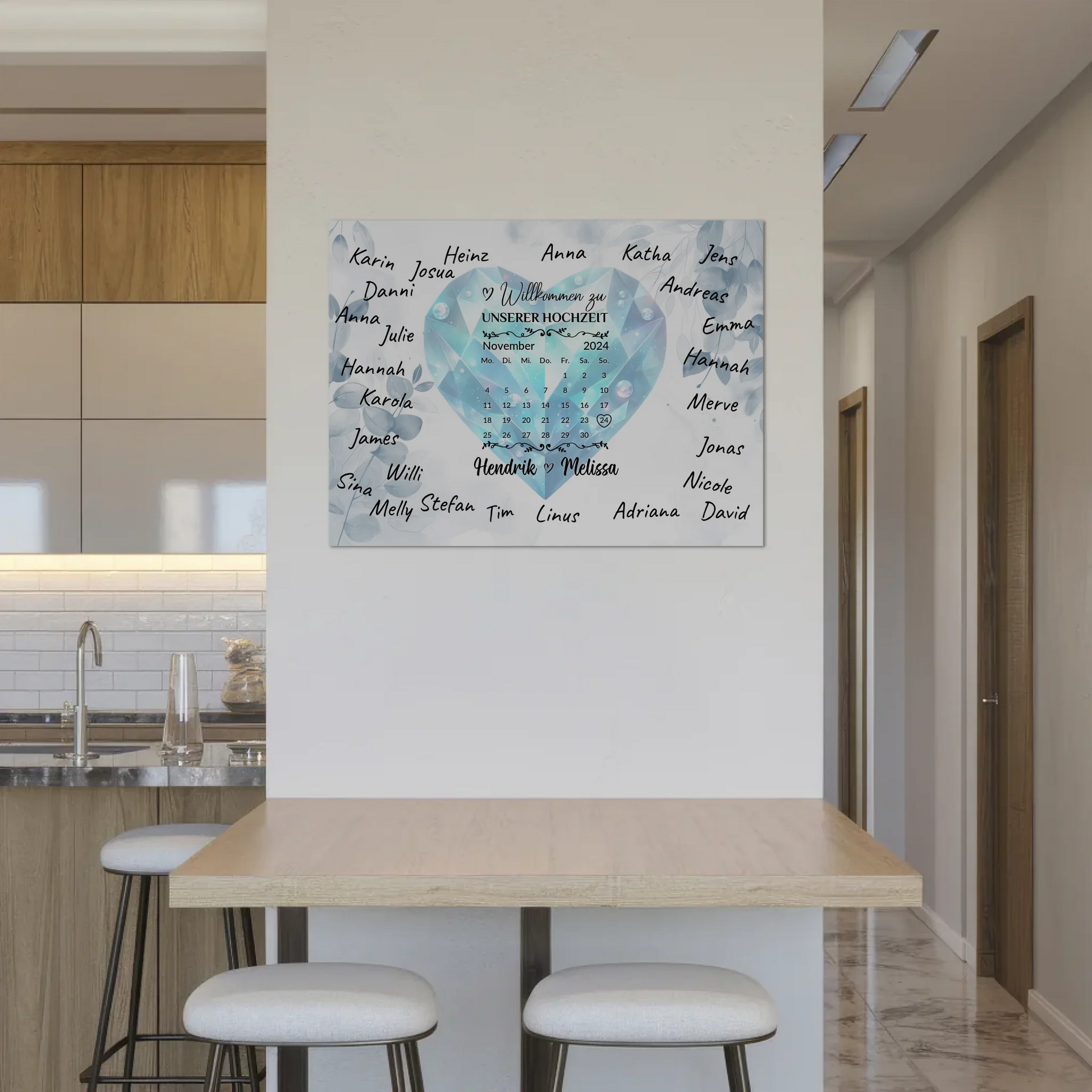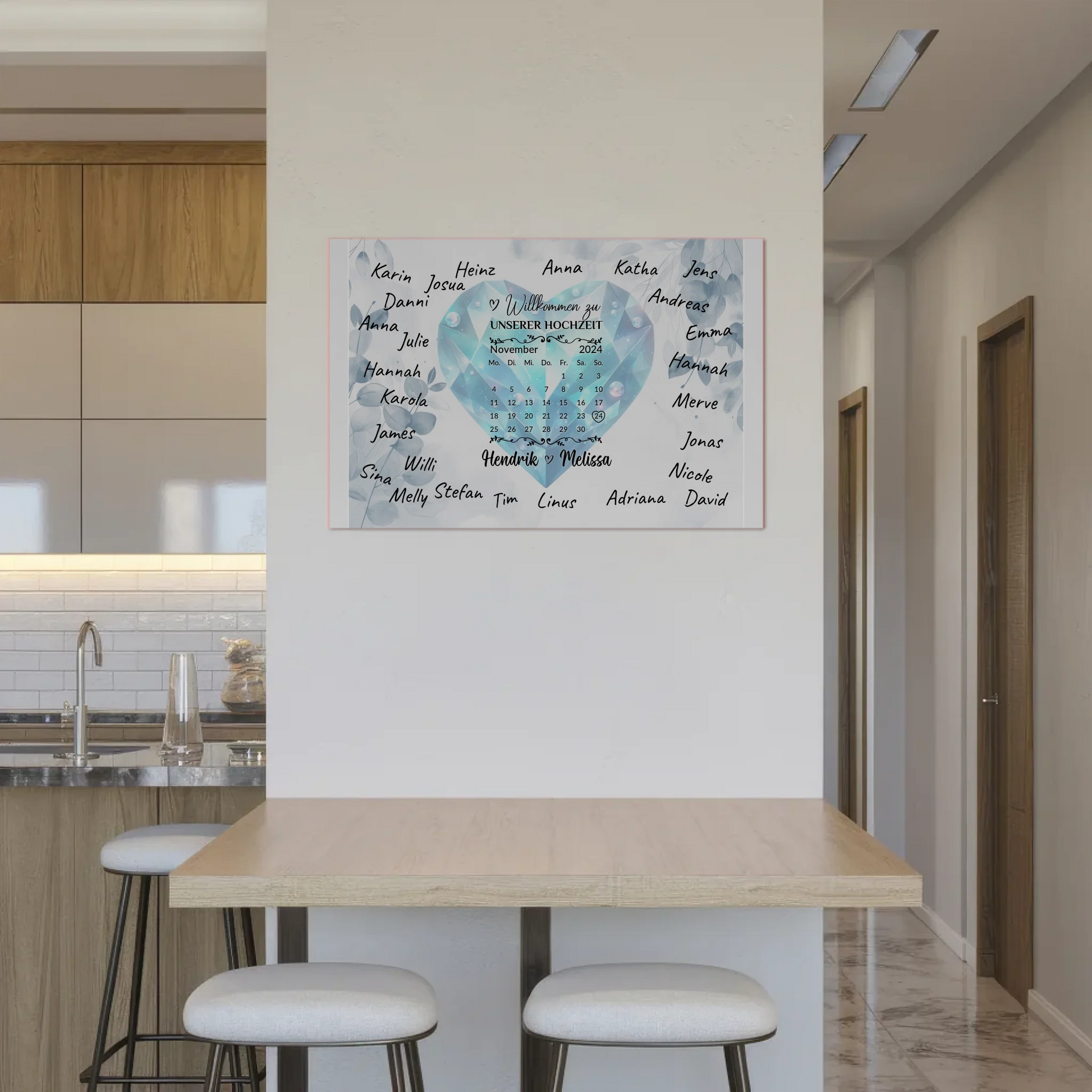 Mache den ersten Eindruck unvergesslich mit unserem einzigartigen Fotoboard Hochzeit Herzlich Willkommen Blue Diamond.