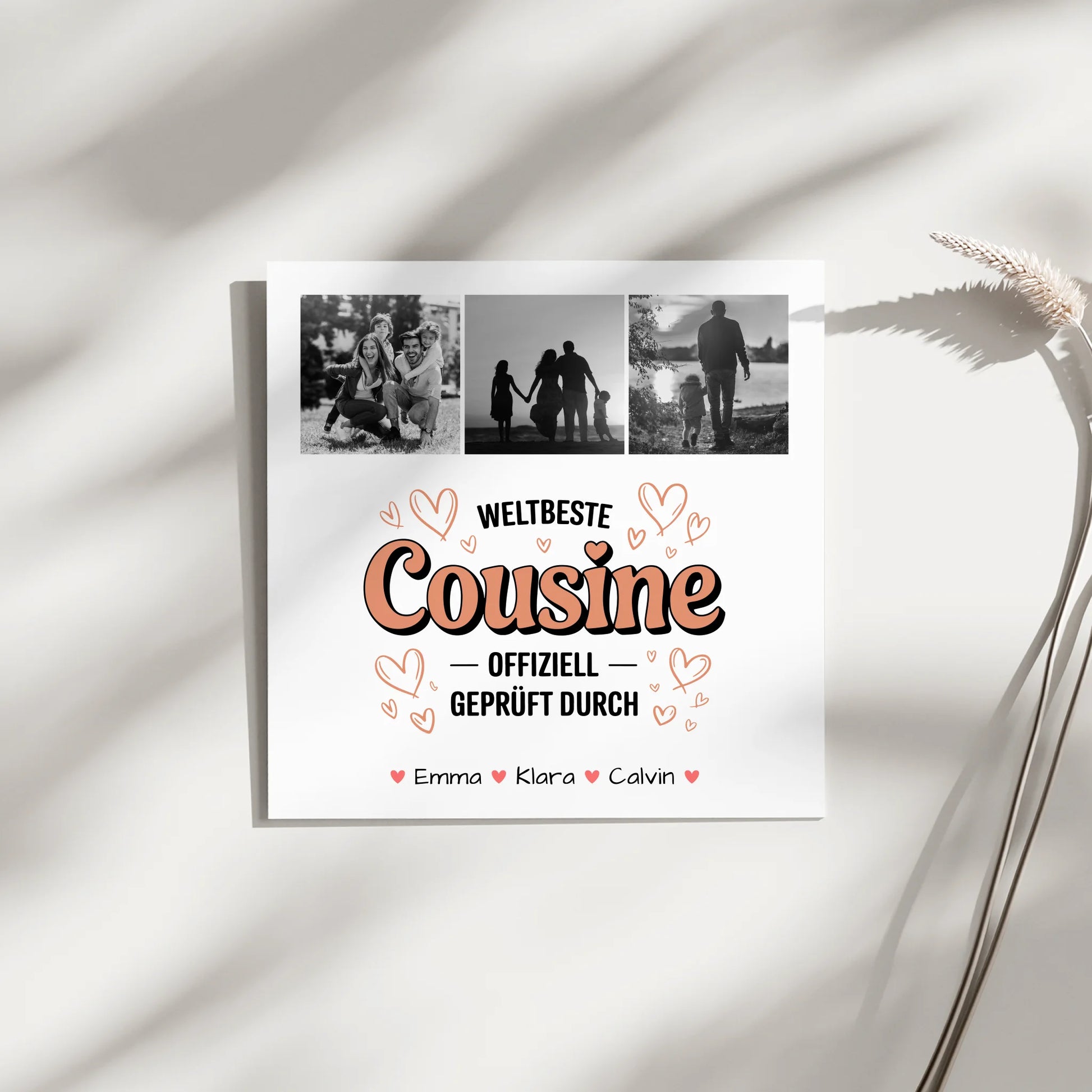 Fotoboard Magnet Poster Fotocollage Cousine Weltbeste Cousine Offiziell Geprüft Durch - Das perfekte personalisierte Geschenk für deine Cousine