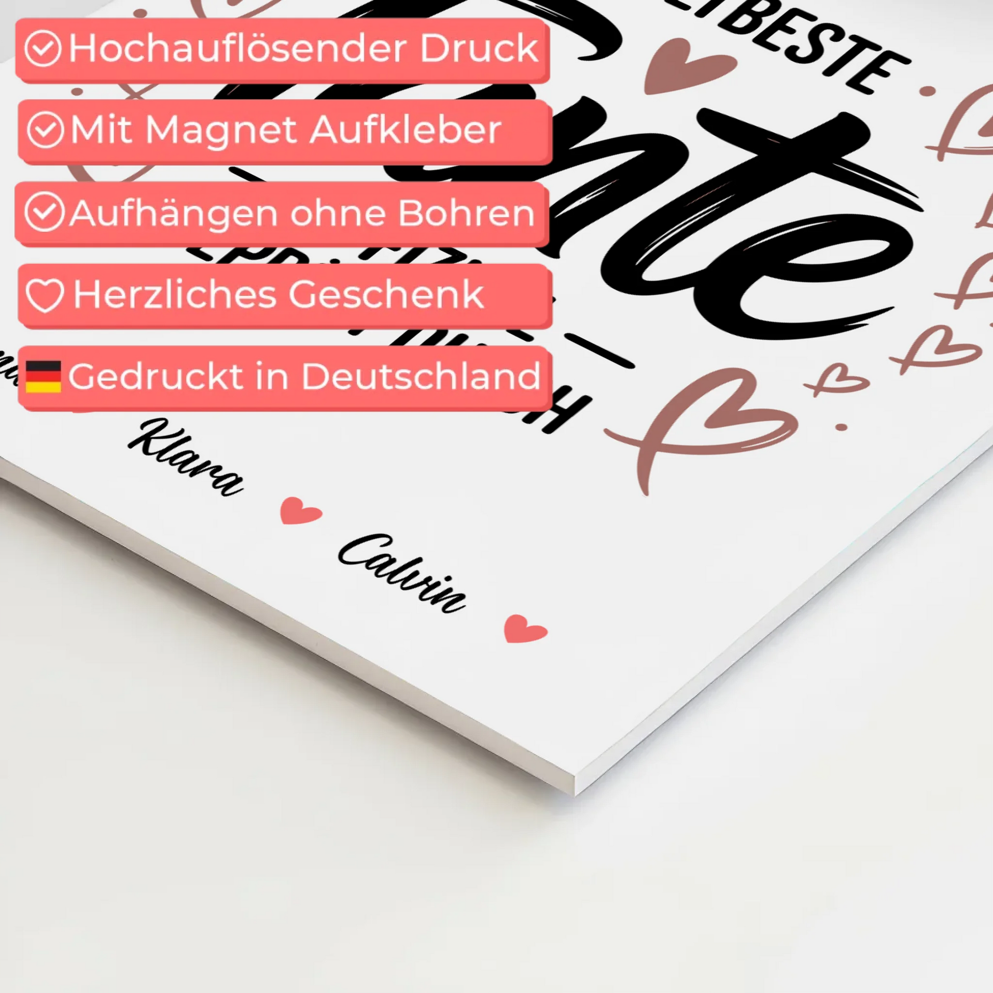 Fotoboard Magnet Poster Fotocollage für Tante Weltbeste Tante Offiziell Geprüft Durch