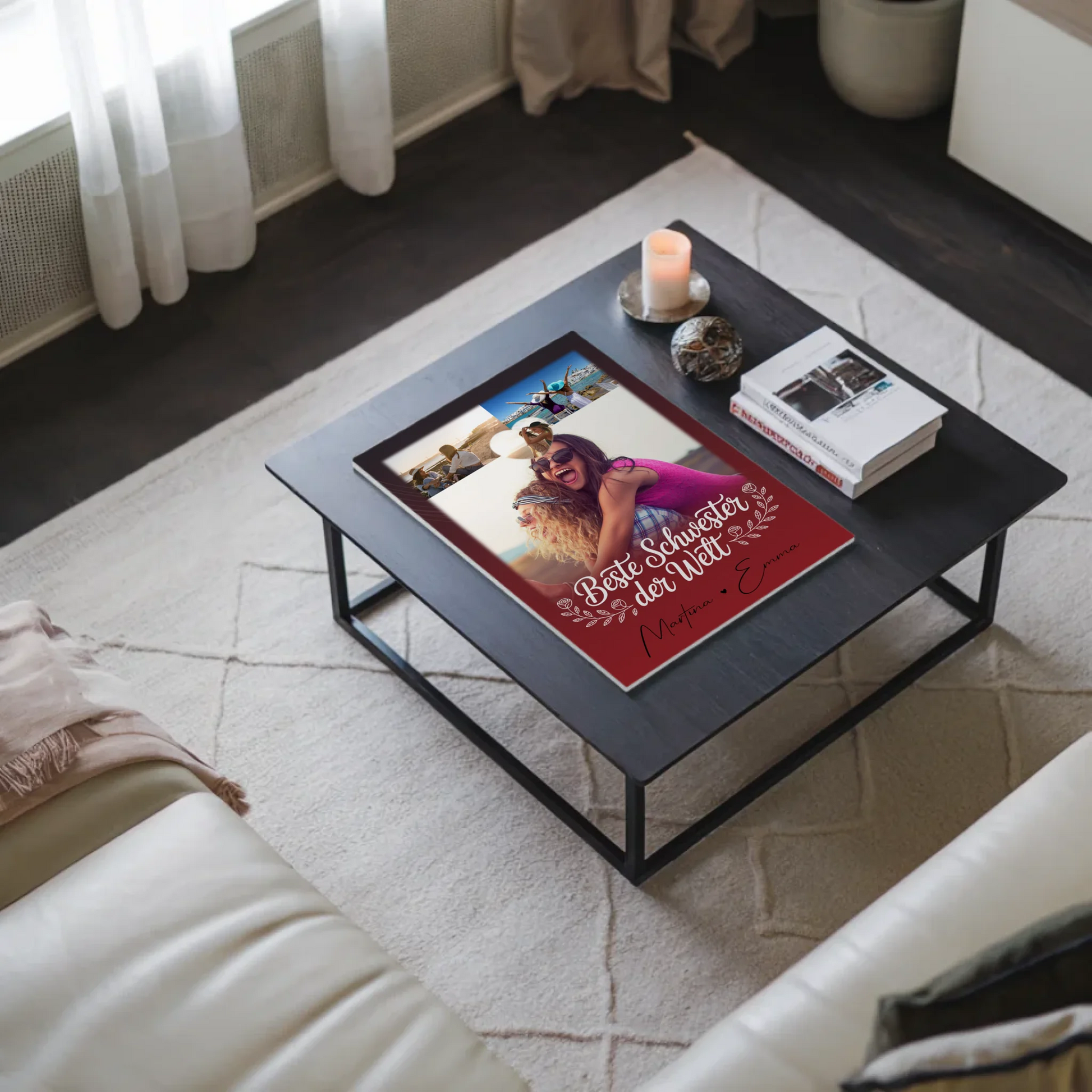 Fotoboard Magnet Poster mit 3 Fotos und Herz Foto Beste Schwester der Welt – Das perfekte personalisierte Geschenk zum Geburtstag