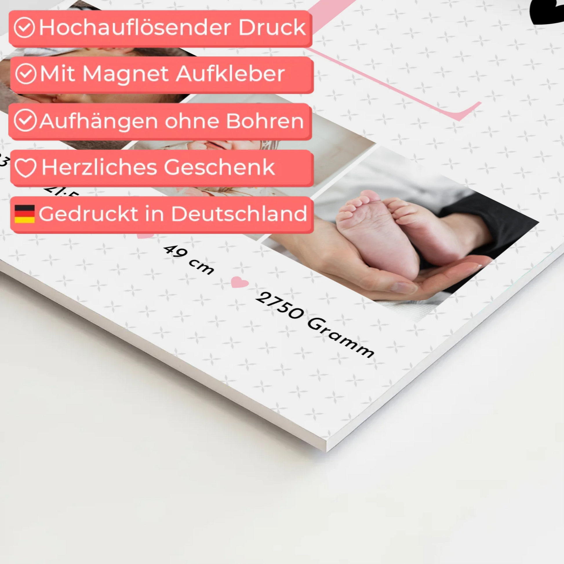 Fotoboard Magnet Poster mit Geburtsdaten und Fotos Baby Geschenk Sternchen Muster personalisiert