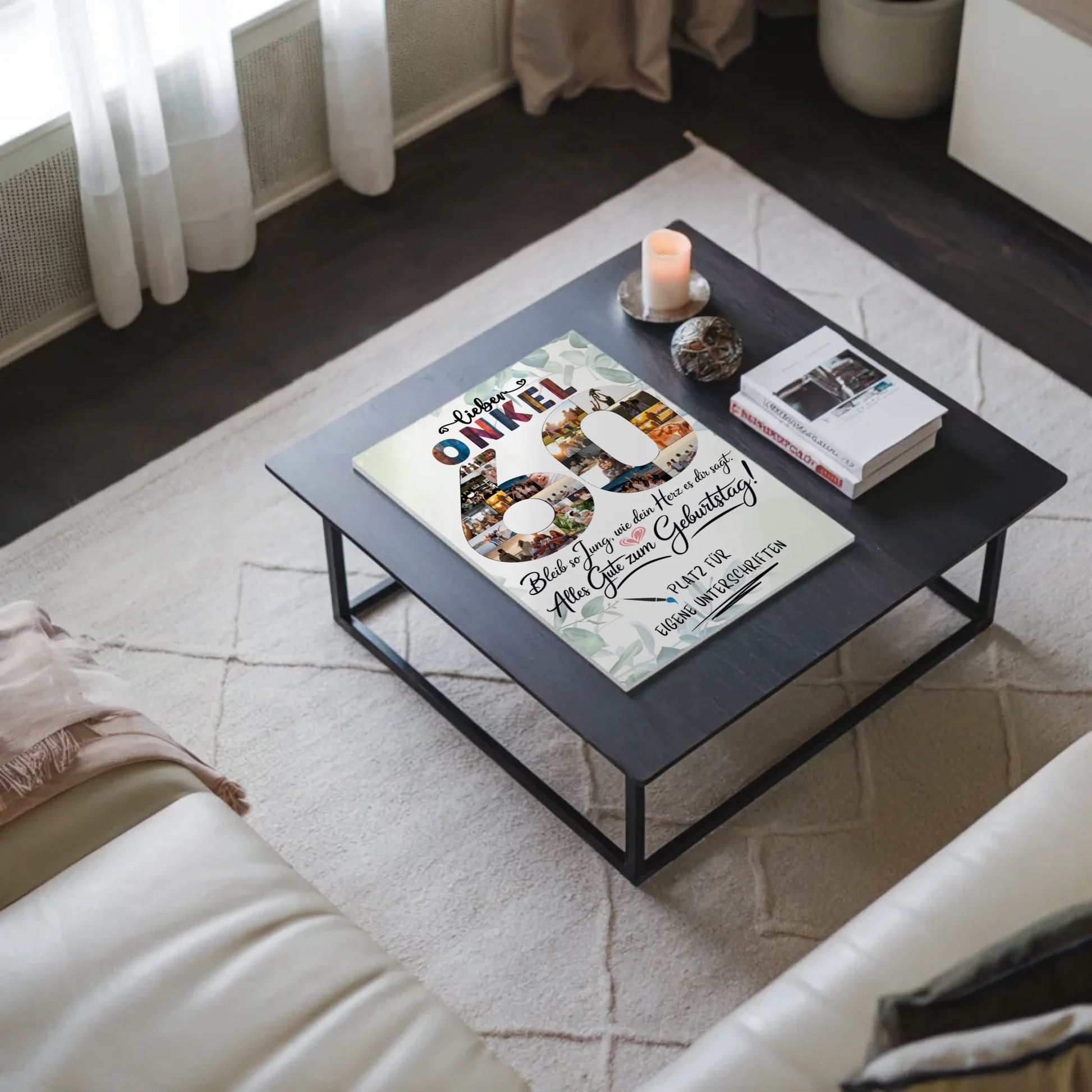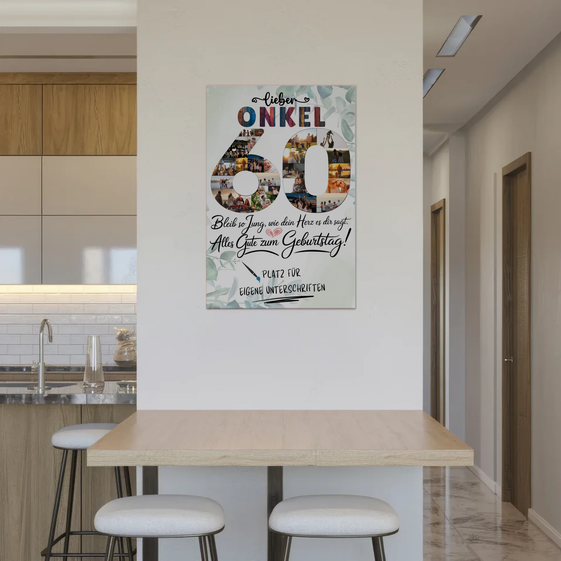 Mach den 60. Geburtstag Deines Onkels zu einem unvergesslichen Tag mit einem persönlichen Geschenk aus unserem Shop – dem Fotoboard Magnet Poster mit Unterschriften!