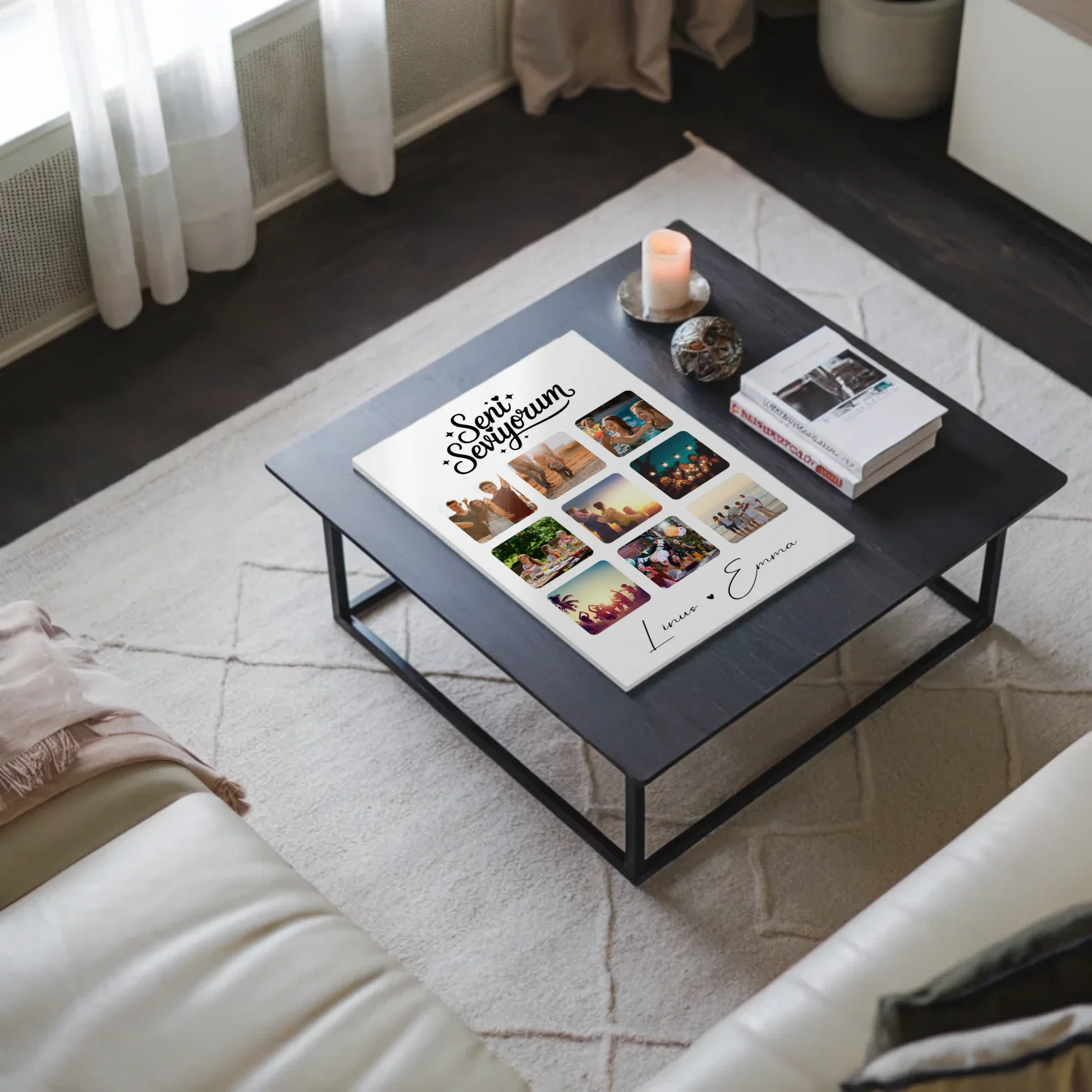 Personalisierte Geschenkidee: Fotoboard Magnet Poster Paar Fotocollage 9 Fotos Seni seviyorum Liebe auf Türkisch Geschenk