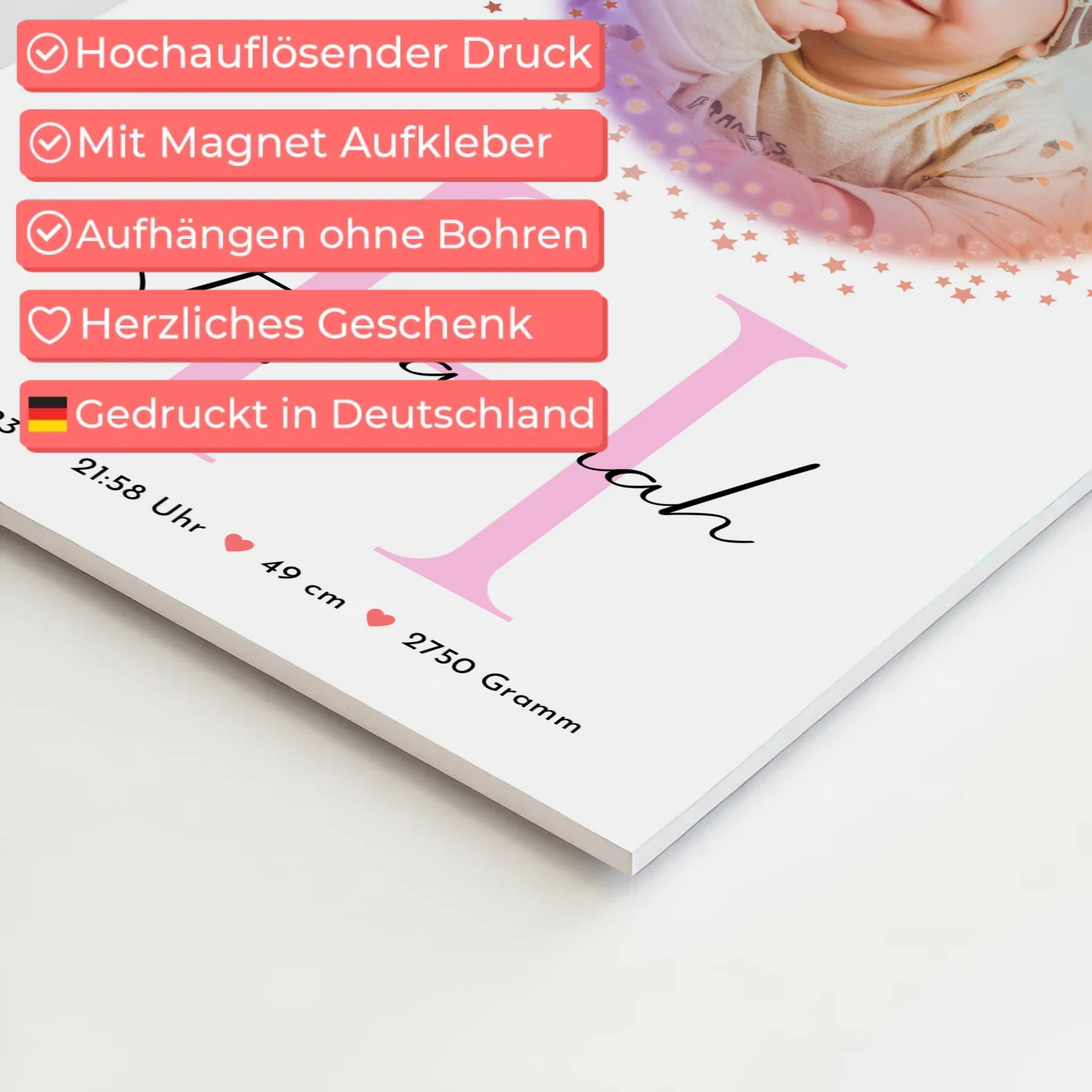 Fotoboard Magnet Wandbild Geburt Baby mit Namen Foto & Geburtsdaten