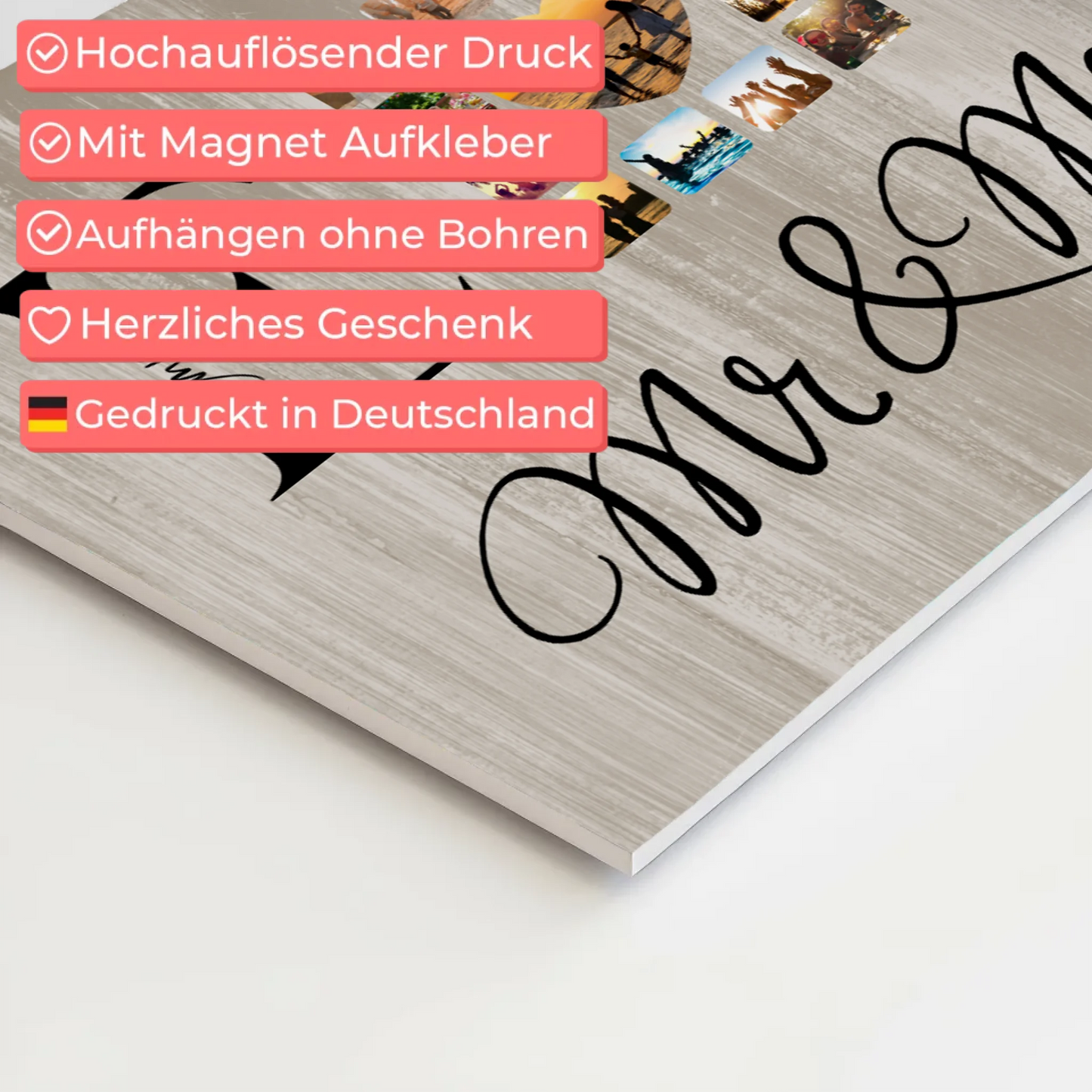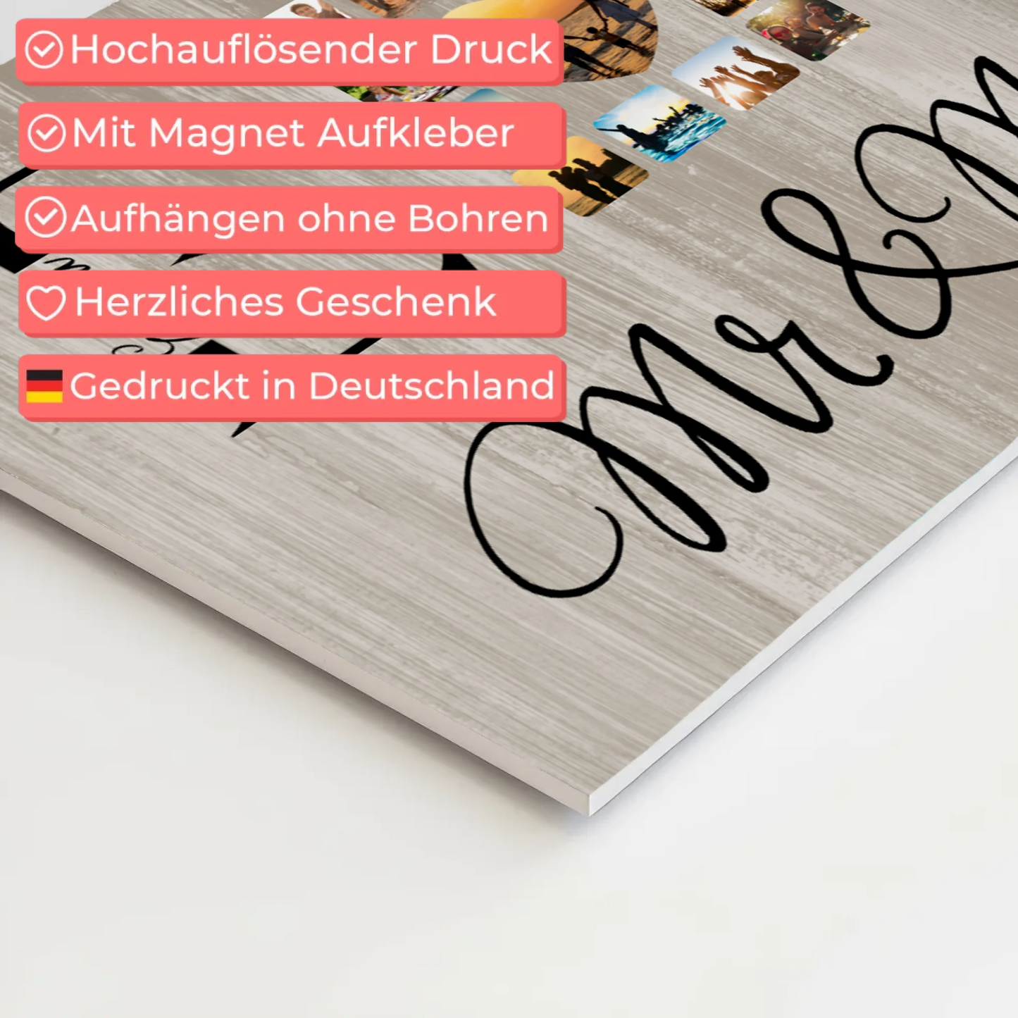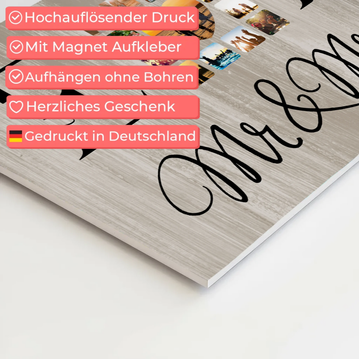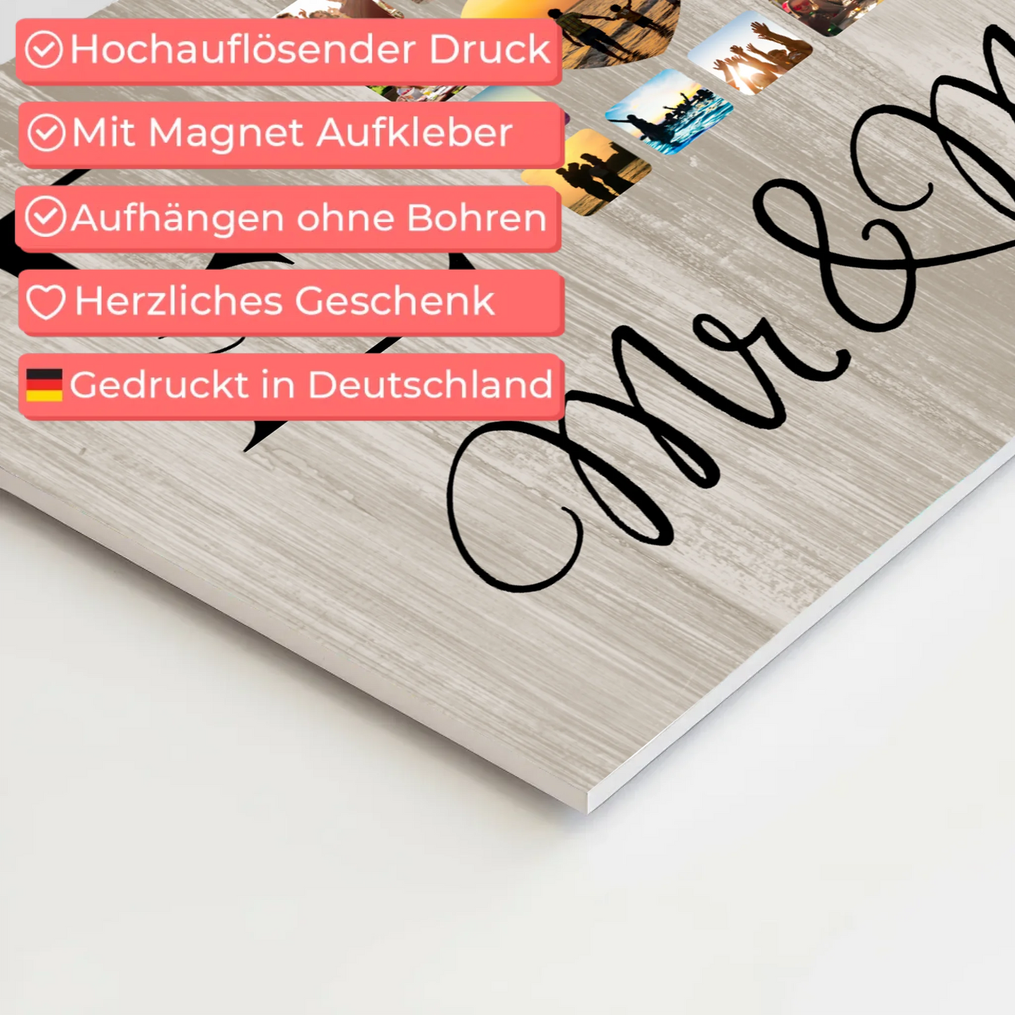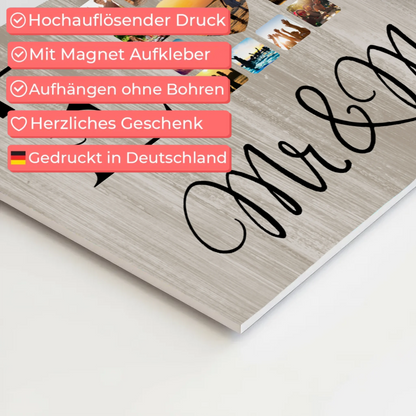 Fotoboard Magnetisches Wandbild Liebe für Paare Mit Fotos Initialien und Fotos Mr & Mrs