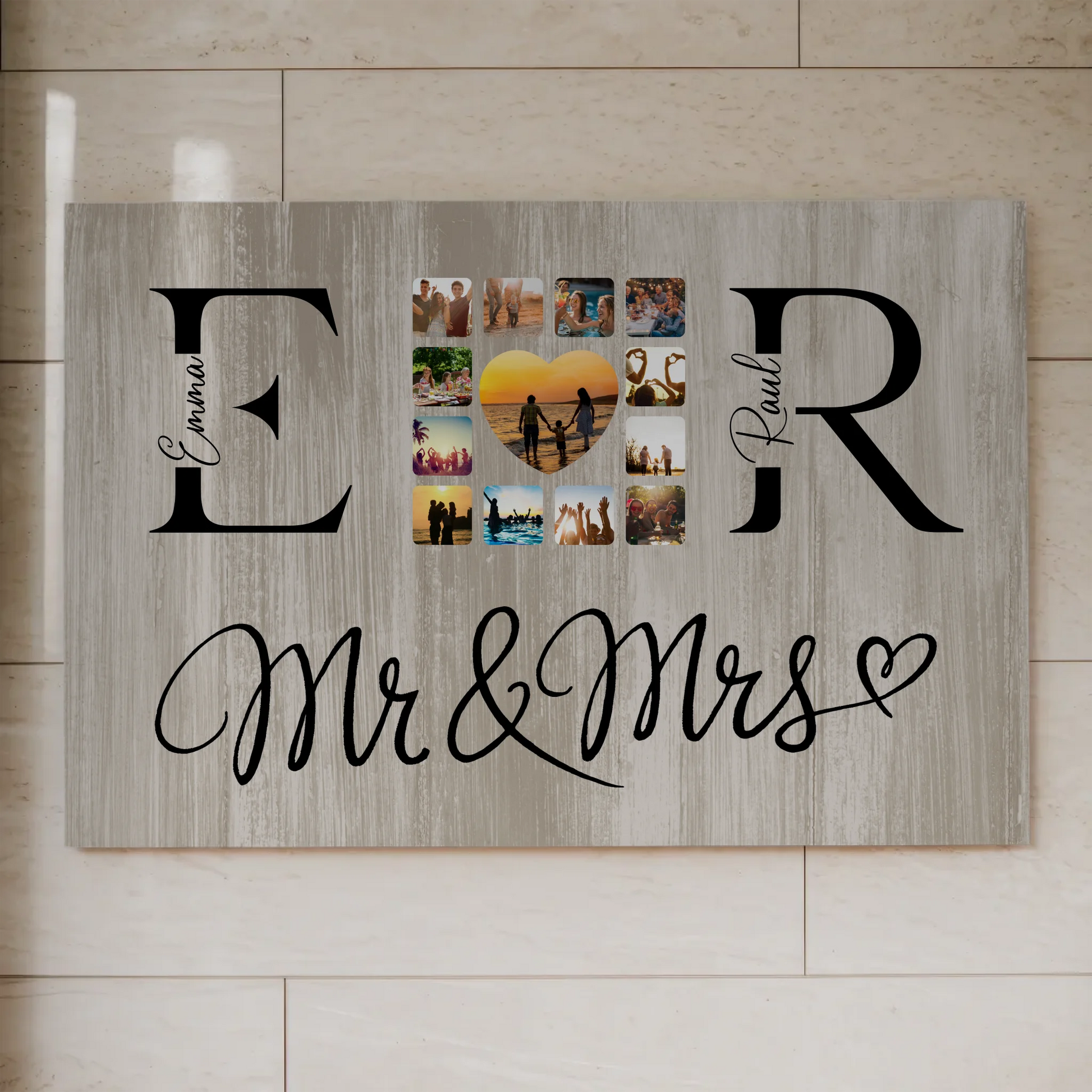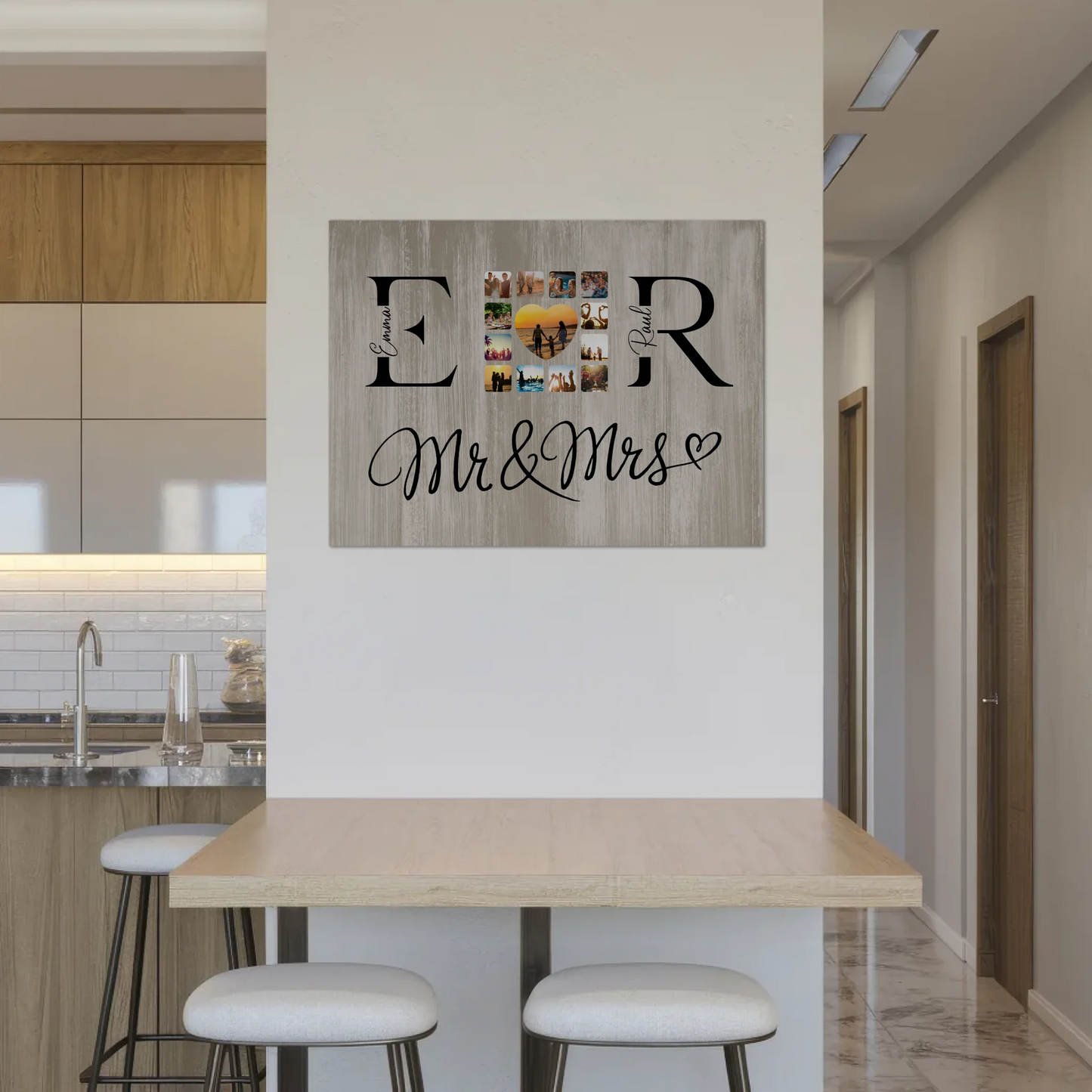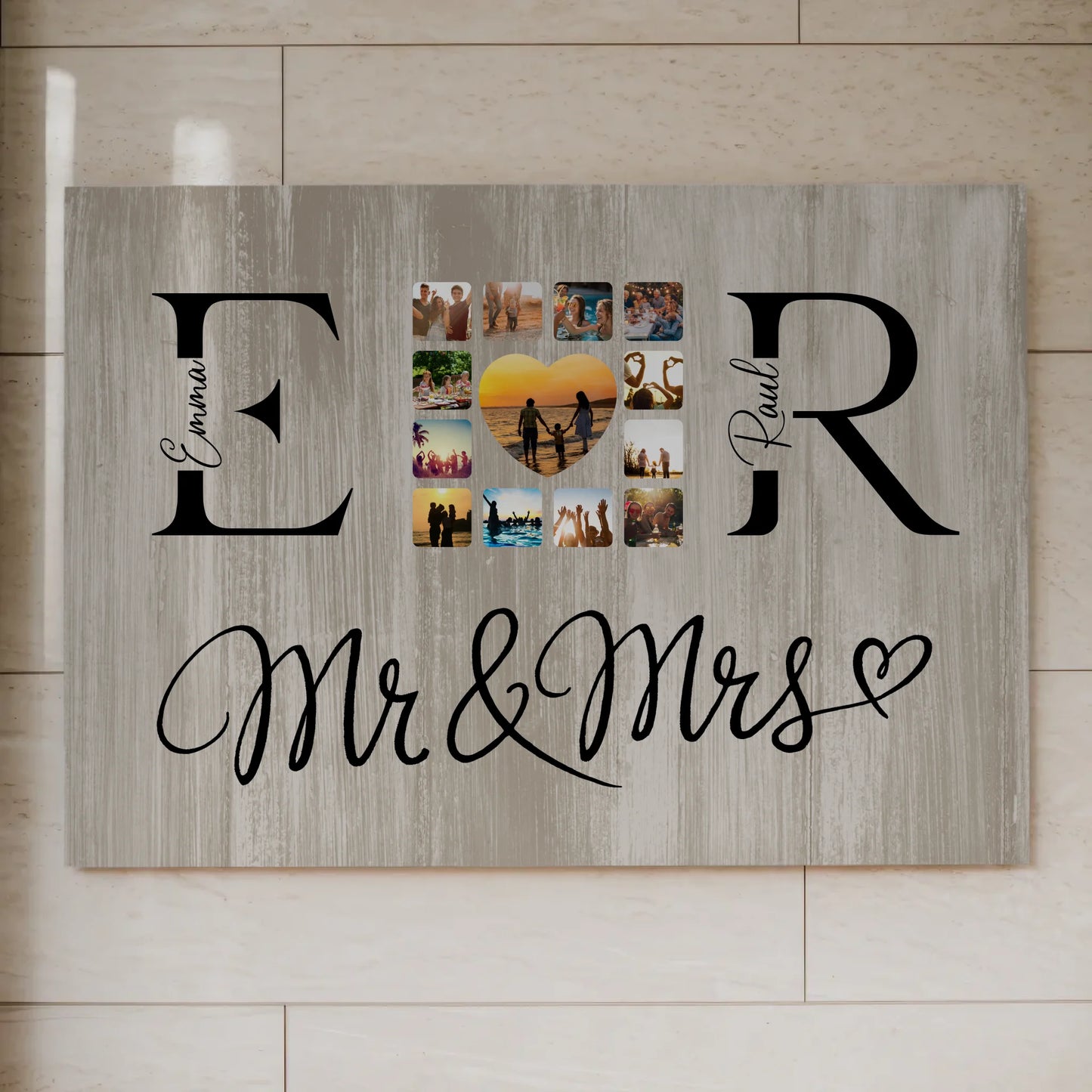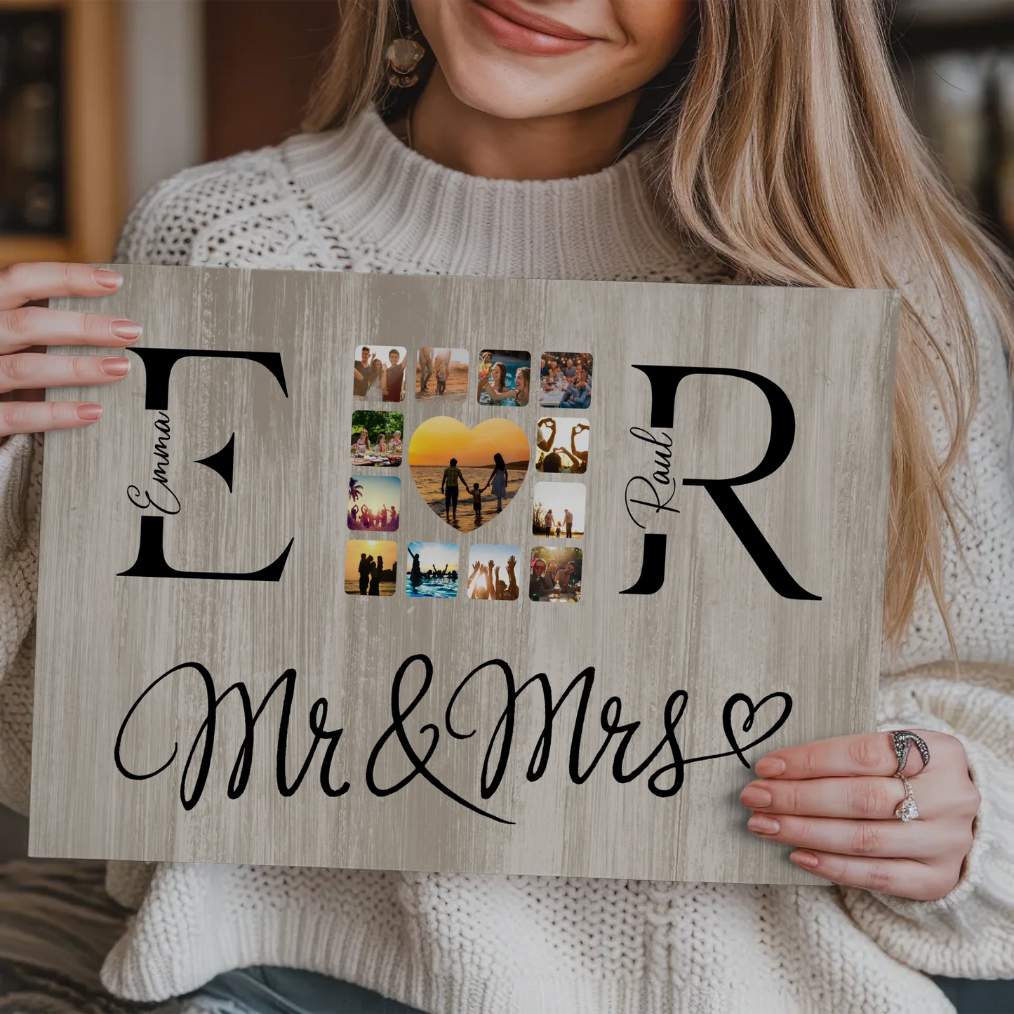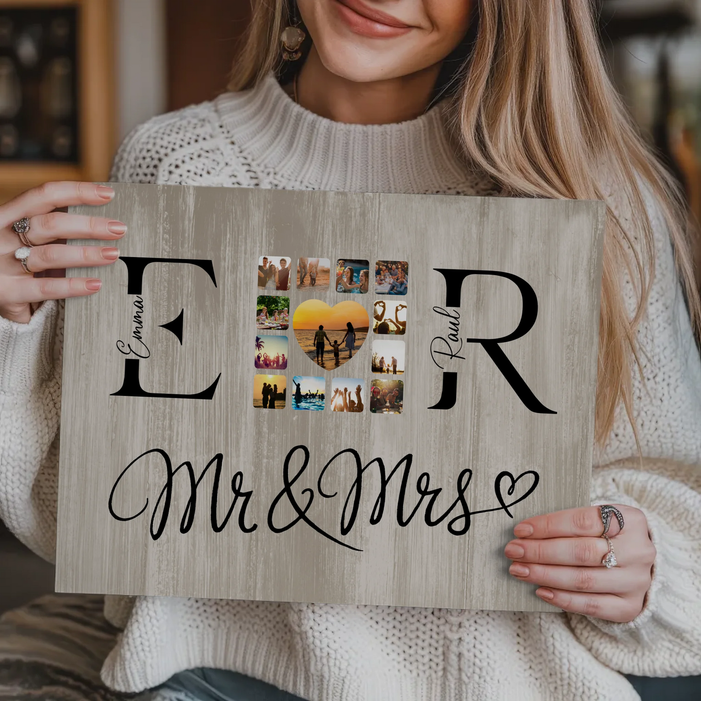 Fotoboard Magnetisches Wandbild Liebe für Paare Mit Fotos Initialien und Fotos Mr & Mrs