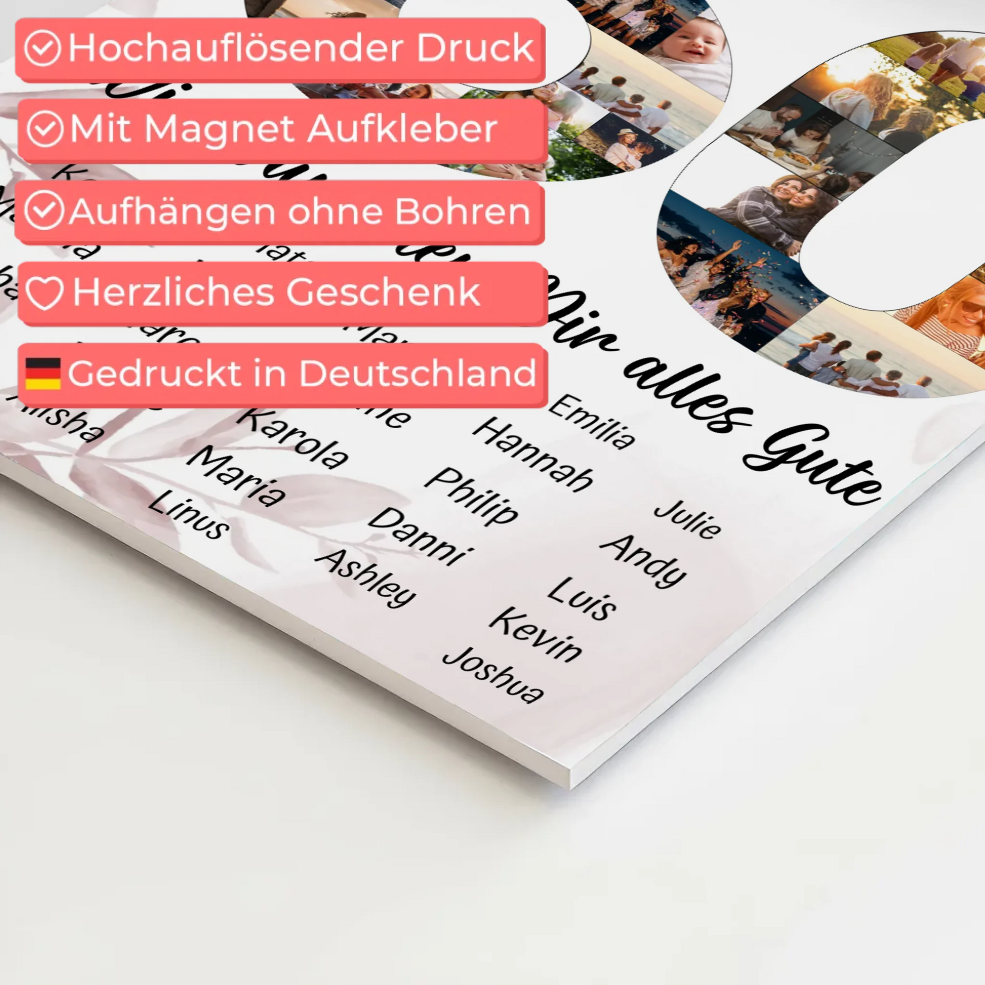 Suchst du nach einem einzigartigen und persönlichen Geschenk für eine besondere Person, die ihren 60. Geburtstag feiert? Das Fotoboard mit Wunschtext 60 Geburtstag Poster magnetisch ist die ideale Wahl! Du kannst über 20+ Fotos einfügen und das Design mit deinem eigenen Spruch oder Wunschtext individuell gestalten. Egal, ob du einen kreativen Namen, eine liebevolle Unterschrift oder einen emotionalen Hintergrundbild hinzufügen möchtest – die Möglichkeiten sind grenzenlos.