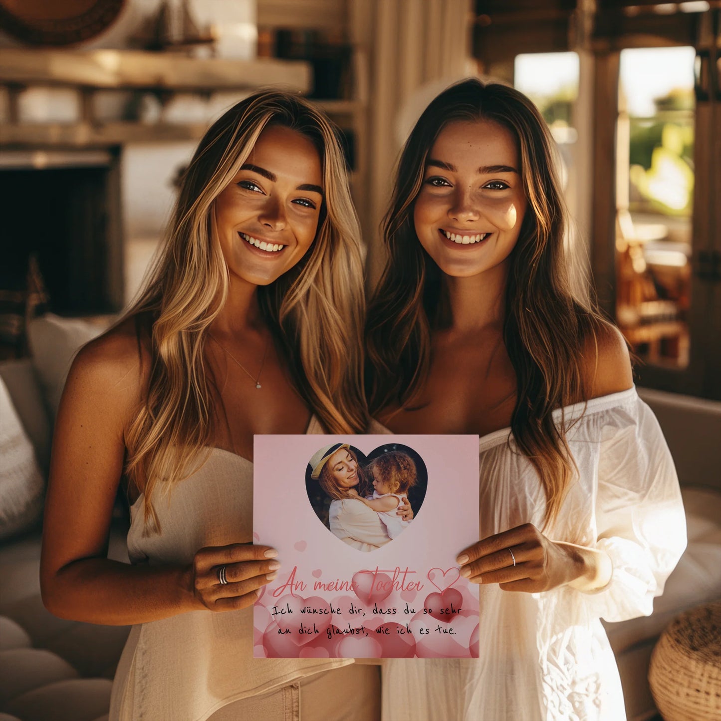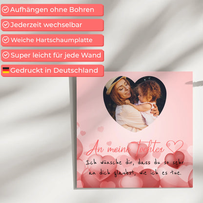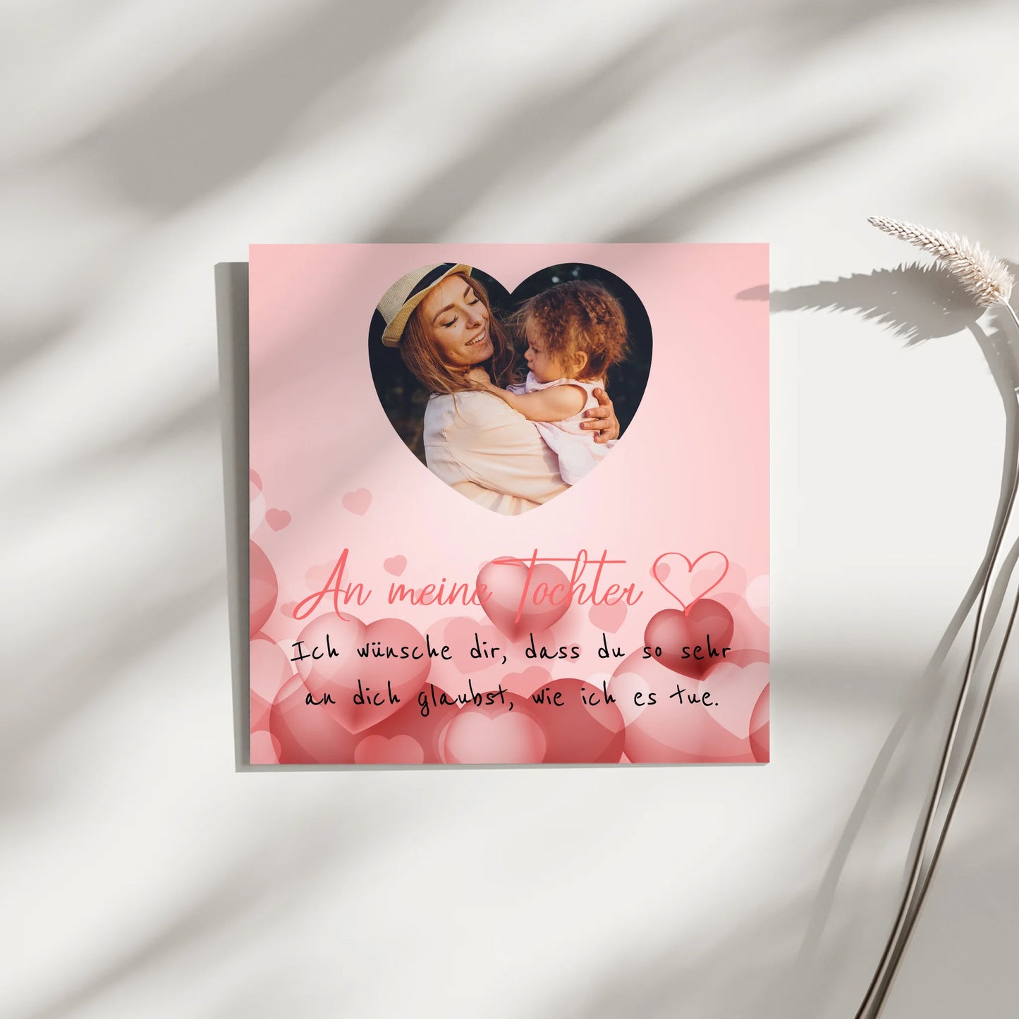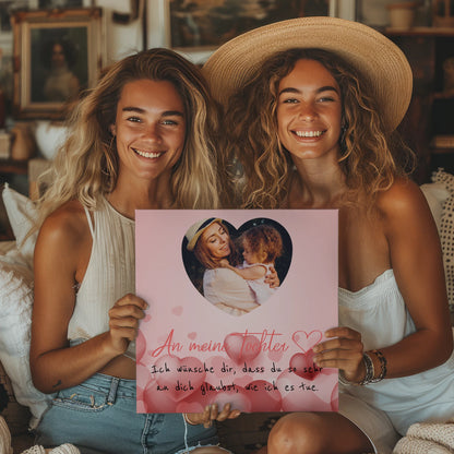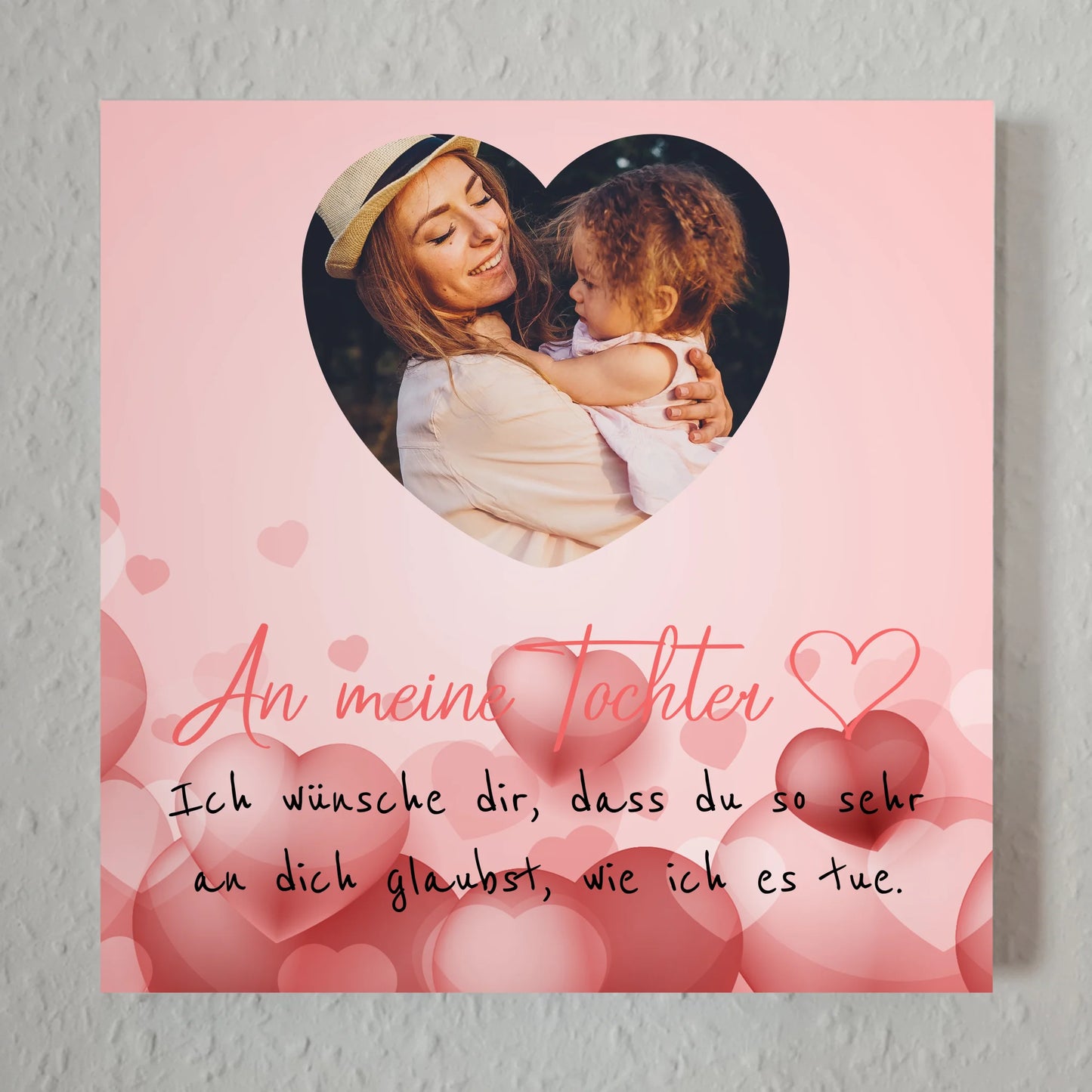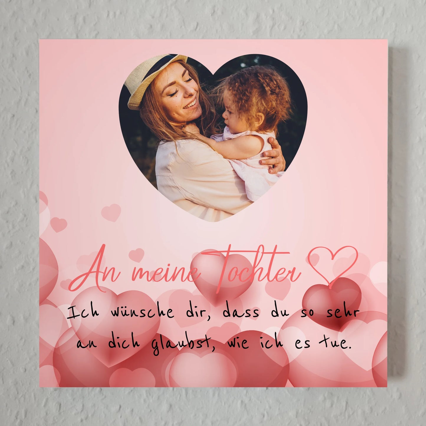 Du kannst bei diesem schönen Design 1 Foto, Eigener Spruch oder Wunschtext & Hintergrundbild ganz individuell personalisieren.