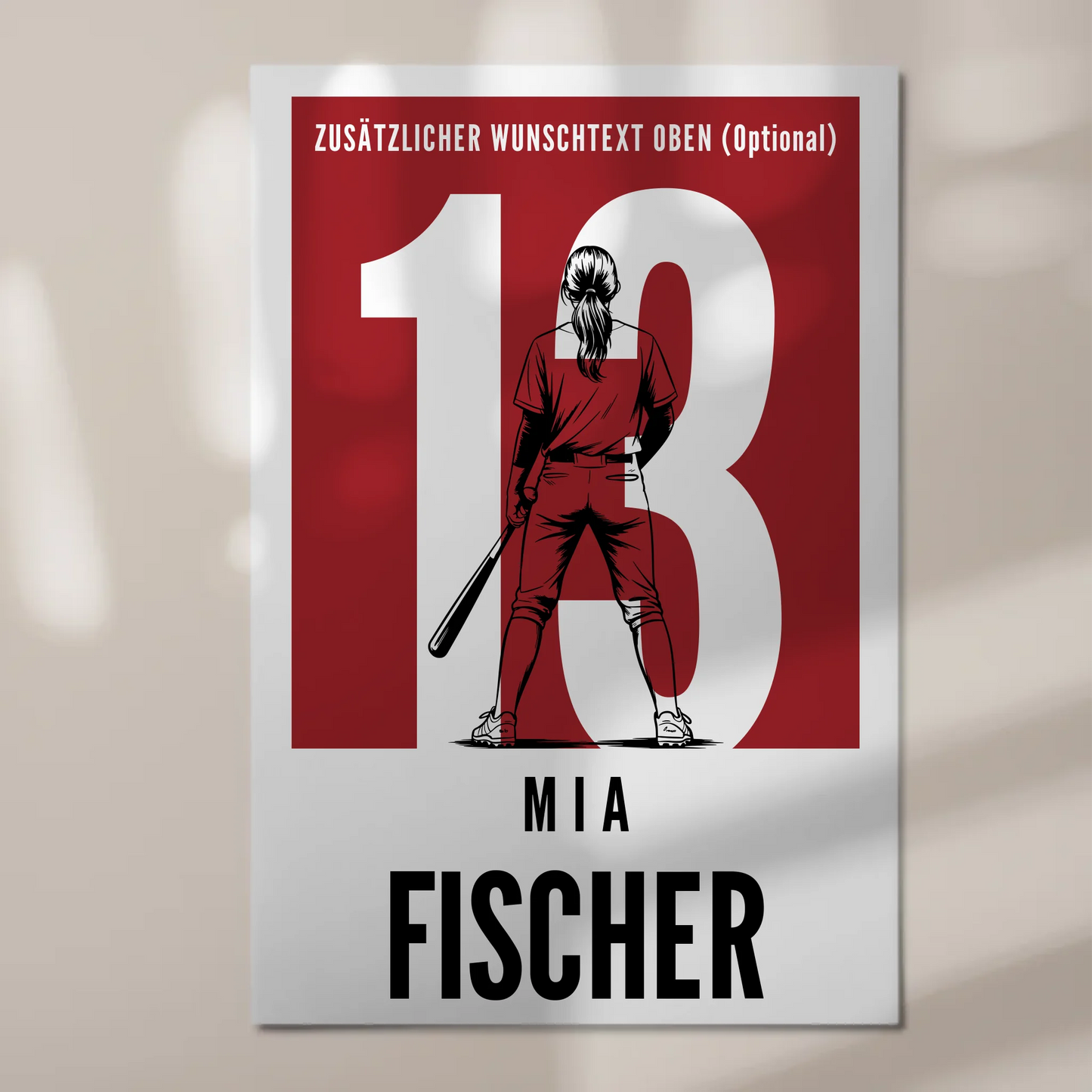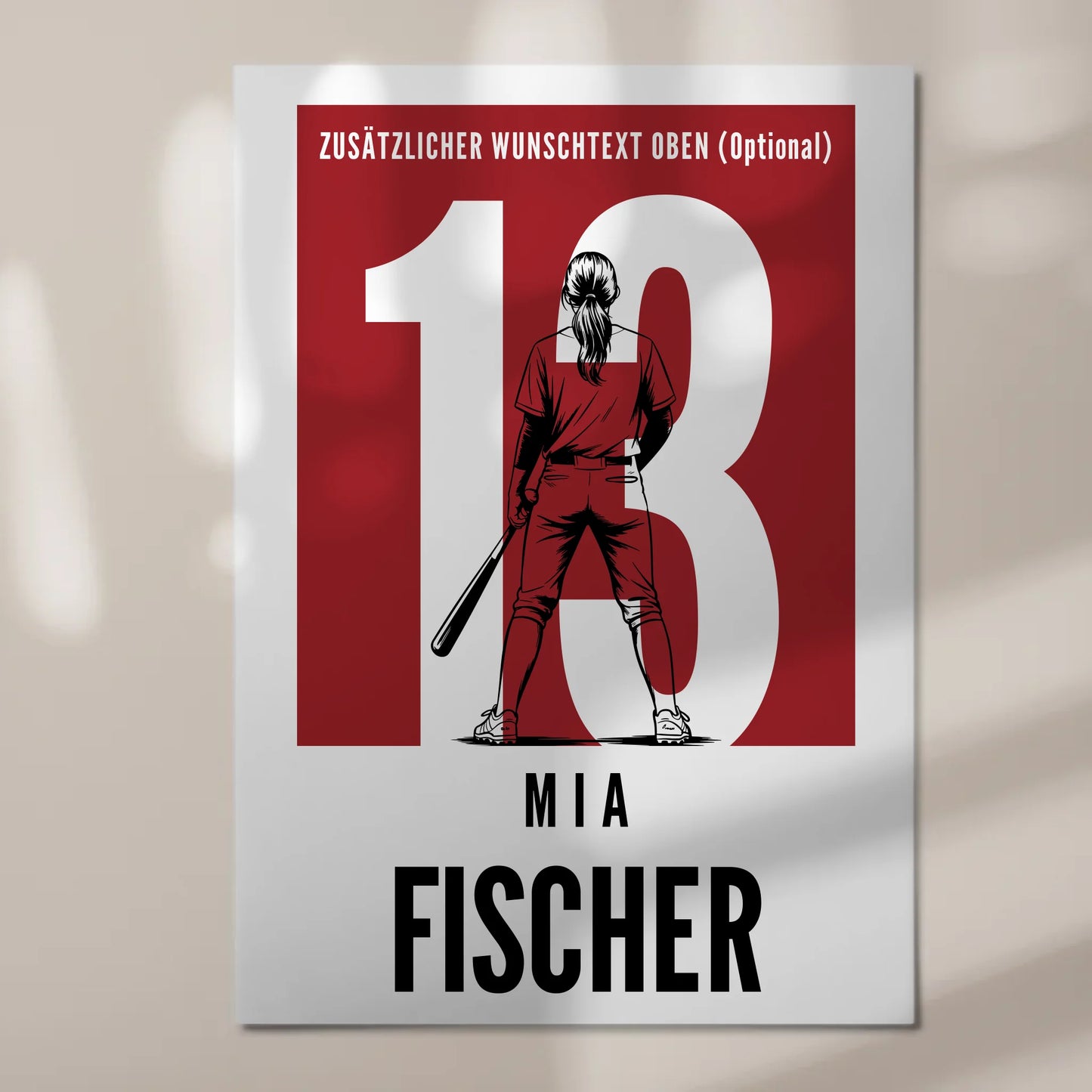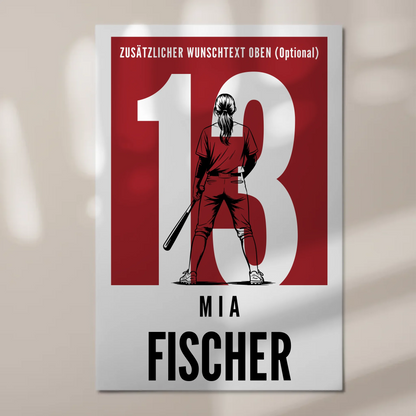 Fotoboard Personalisiertes Wandbild Baseball Baseballspielerin Geschenk für Mädchen Turnier