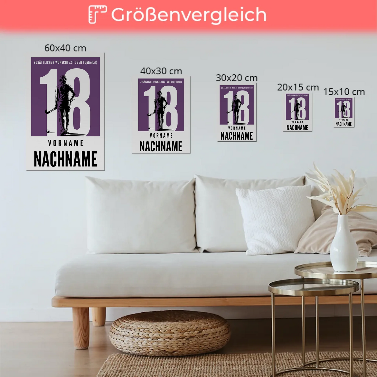 Entdecke das perfekte Geschenk für alle leidenschaftlichen Feldhockeyspielerinnen mit unserem Fotoboard Personalisiertes Wandbild. Dieses einzigartige Wandbild ist ideal, um die Erfolge und die Liebe zum Feldhockey zu feiern. Du kannst den Namen, den Farbstil sowie einen Wunschtext individuell anpassen, sodass dein Geschenk ganz persönlich wird. Ob für ein Turnier, eine Urkunde oder einfach als Anerkennung – dieses personalisierte Wandbild ist vielseitig einsetzbar und eignet sich für jeden Anlass. Das hochwertige Design hebt die Begeisterung für Feldhockey hervor und macht es zu einem besonderen Blickfang in jedem Zimmer. Zeige deine Unterstützung für Mädchen Turnier Urkunde oder andere Anlässe im Bereich Field Hockey mit diesem einzigartigen Fotoboard Personalisiertes Wandbild. Es ist das ideale Geschenk für alle Feldhockeyspielerinnen, die ihre Leidenschaft stilvoll präsentieren möchten. Überrasche deine Liebsten mit einem individuellen Präsent, das ihre Begeisterung für Feldhockey widerspiegelt und lange Freude bereitet.