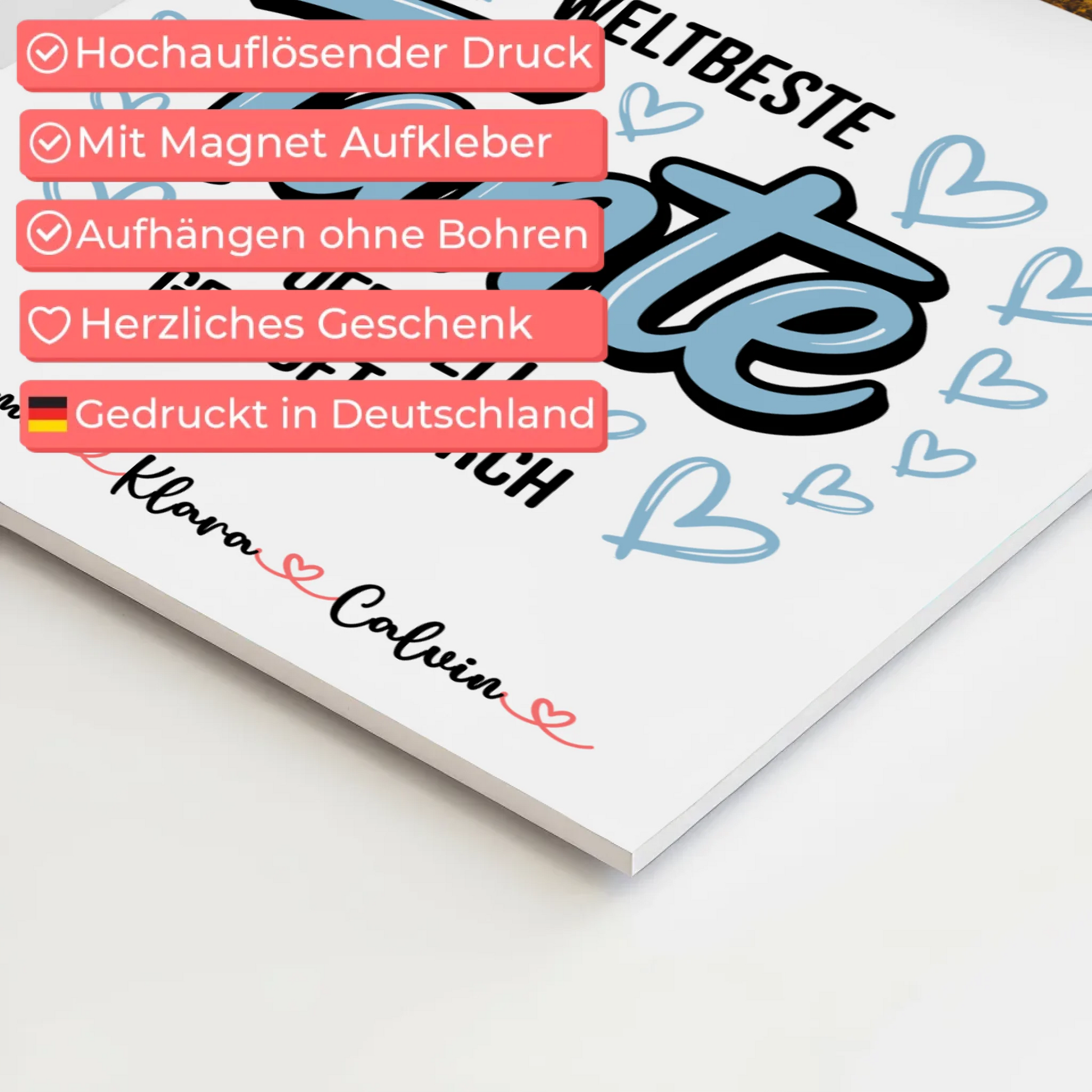 Entdecke das einzigartige Produkt „Fotoboard Poster Magnetisch Fotocollage Tante Weltbeste Tante Offiziell Geprüft Durch - ein personalisiertes Geschenk, das garantiert für Freude sorgt. Dieses individuell gestaltbare Fotoboard eignet sich perfekt als Fotocollage für Tante und ist ideal für jeden Anlass. Du kannst es ganz nach deinem Geschmack personalisieren: Füge 3 Fotos, Namen und ein Hintergrundbild deiner Wahl hinzu, um ein einzigartiges Erinnerungsstück zu schaffen.