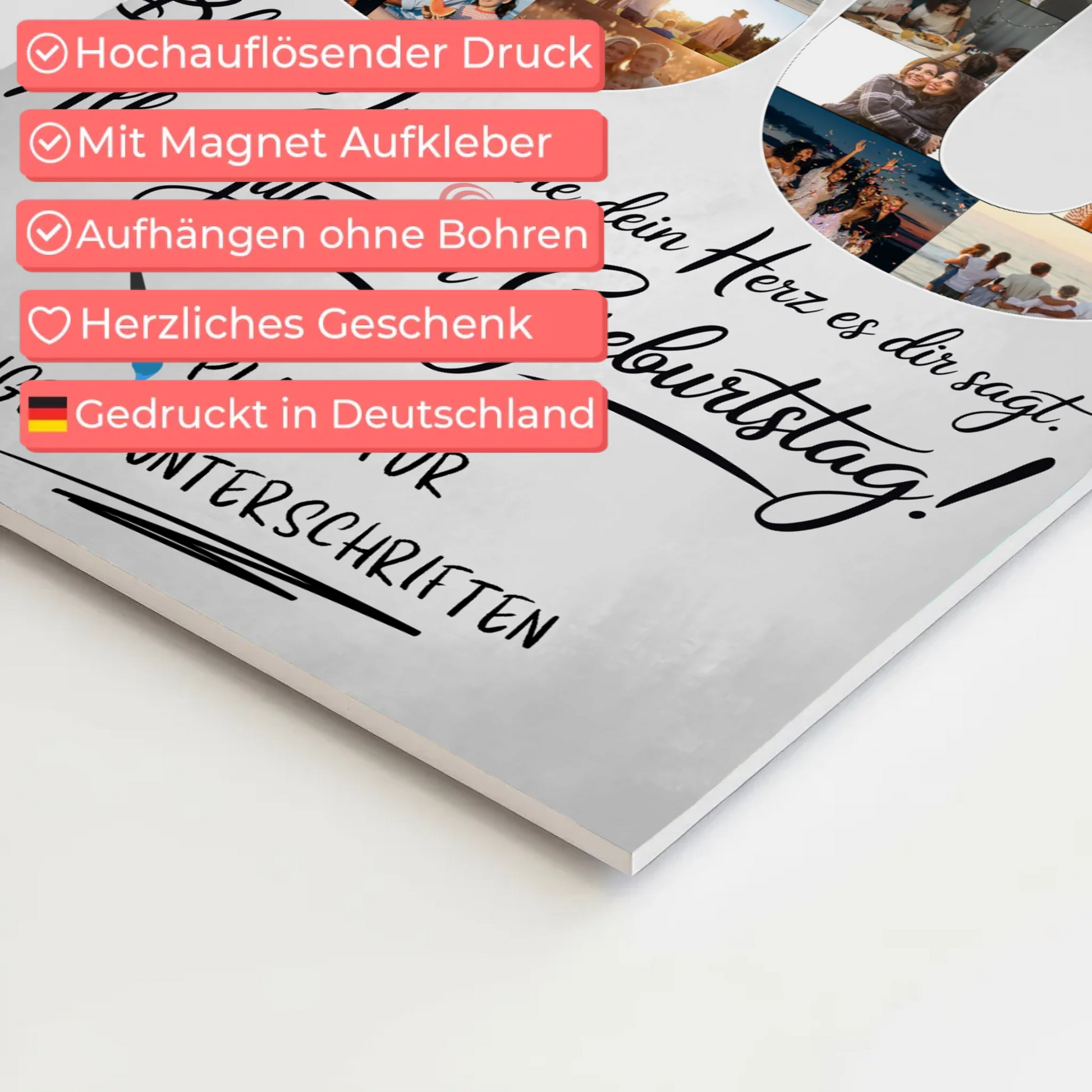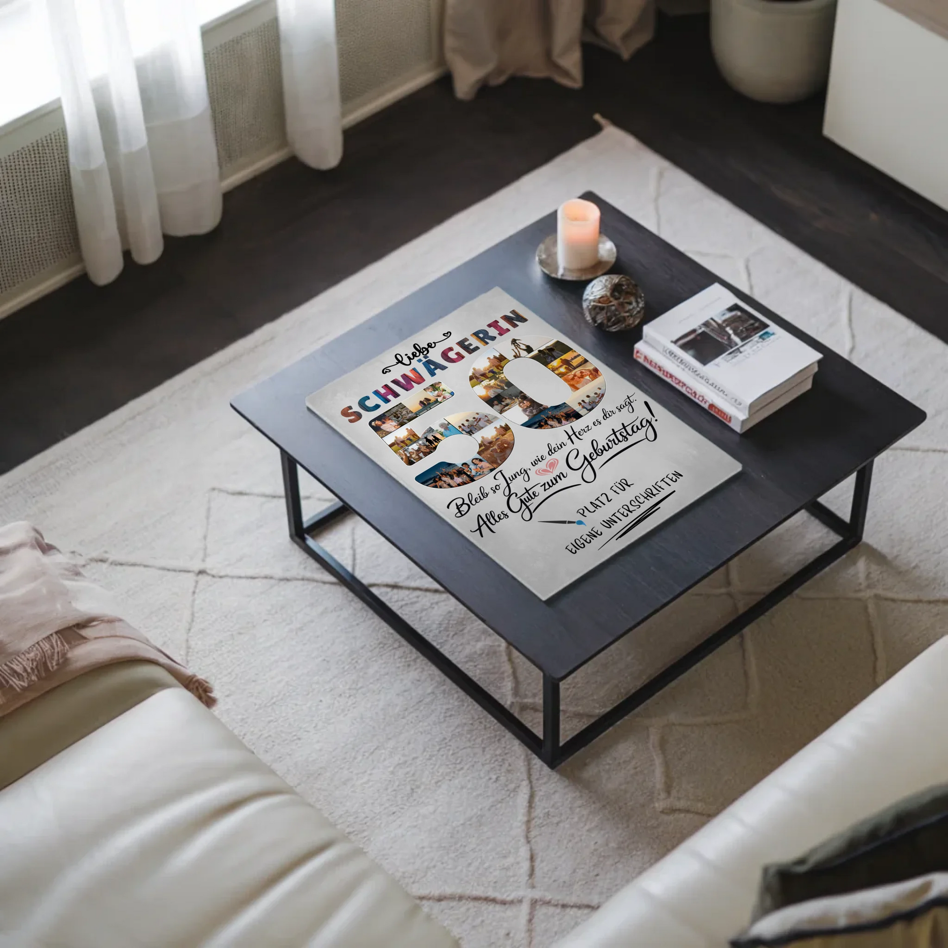 Überrasche deine Schwägerin mit einem einzigartigen Geschenk, das ihre Erinnerungen auf ganz besondere Weise festhält! Das Fotoboard Poster magnetisch mit Wunschtext ist die perfekte Geschenkidee zum 50. Geburtstag. Du kannst aus über 20+ Fotos wählen und diese zu einem wunderschönen Erlebnis vereinen. Füge einen persönlichen Spruch oder deinen eigenen Wunschtext hinzu, um das Geschenk noch individueller zu gestalten.