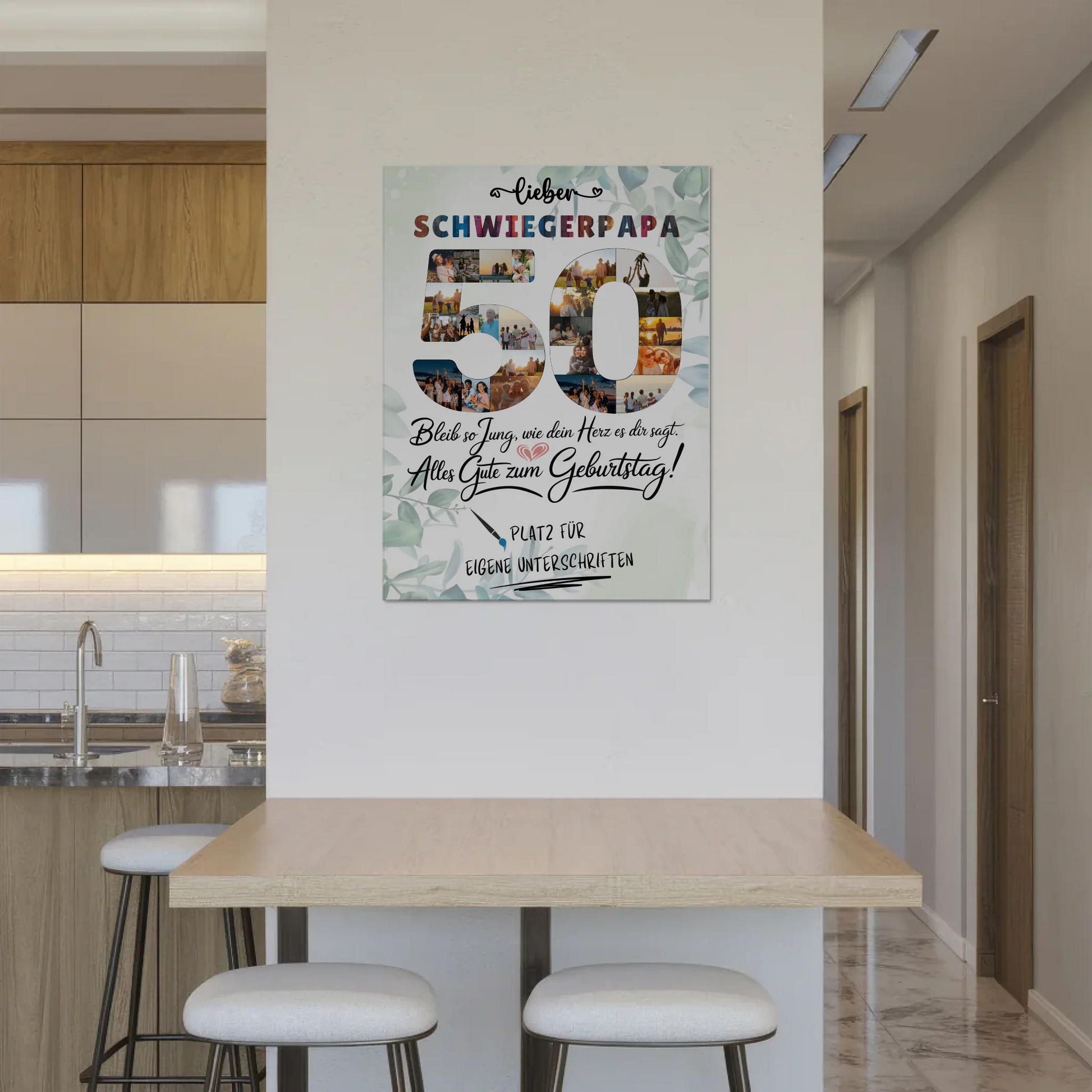 Fotoboard Poster magnetisch mit Wunschtext Schwiegerpapa 50 Geburtstag Fotos