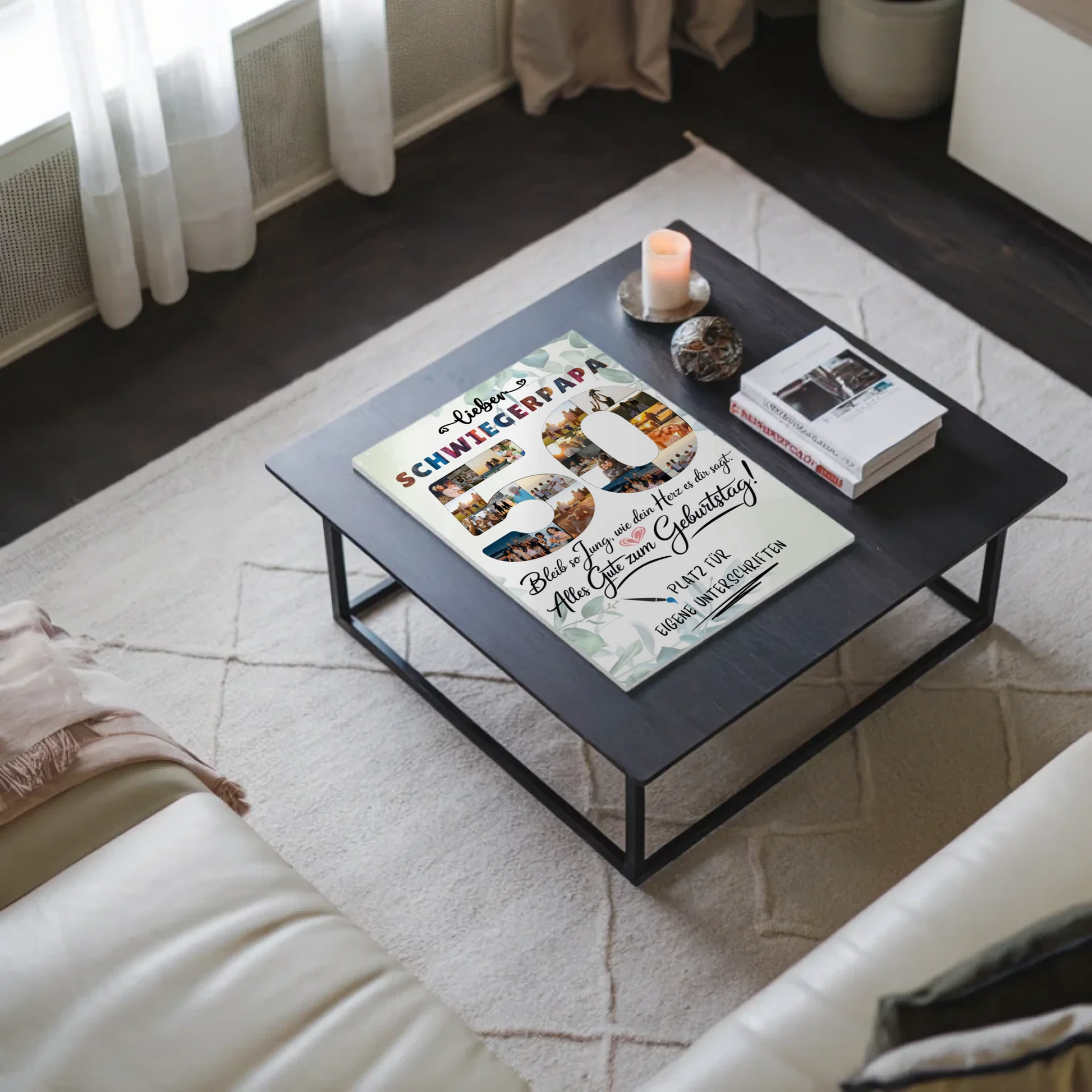 Zeige deinem Schwiegerpapa mit diesem einzigartigen Fotoboard Poster magnetisch zum 50. Geburtstag, dass das Alter nur eine Zahl ist und man immer jung im Herzen bleiben kann! Nutze die vielen Personalisierungs-Optionen und gestalte ein unvergessliches Andenken.