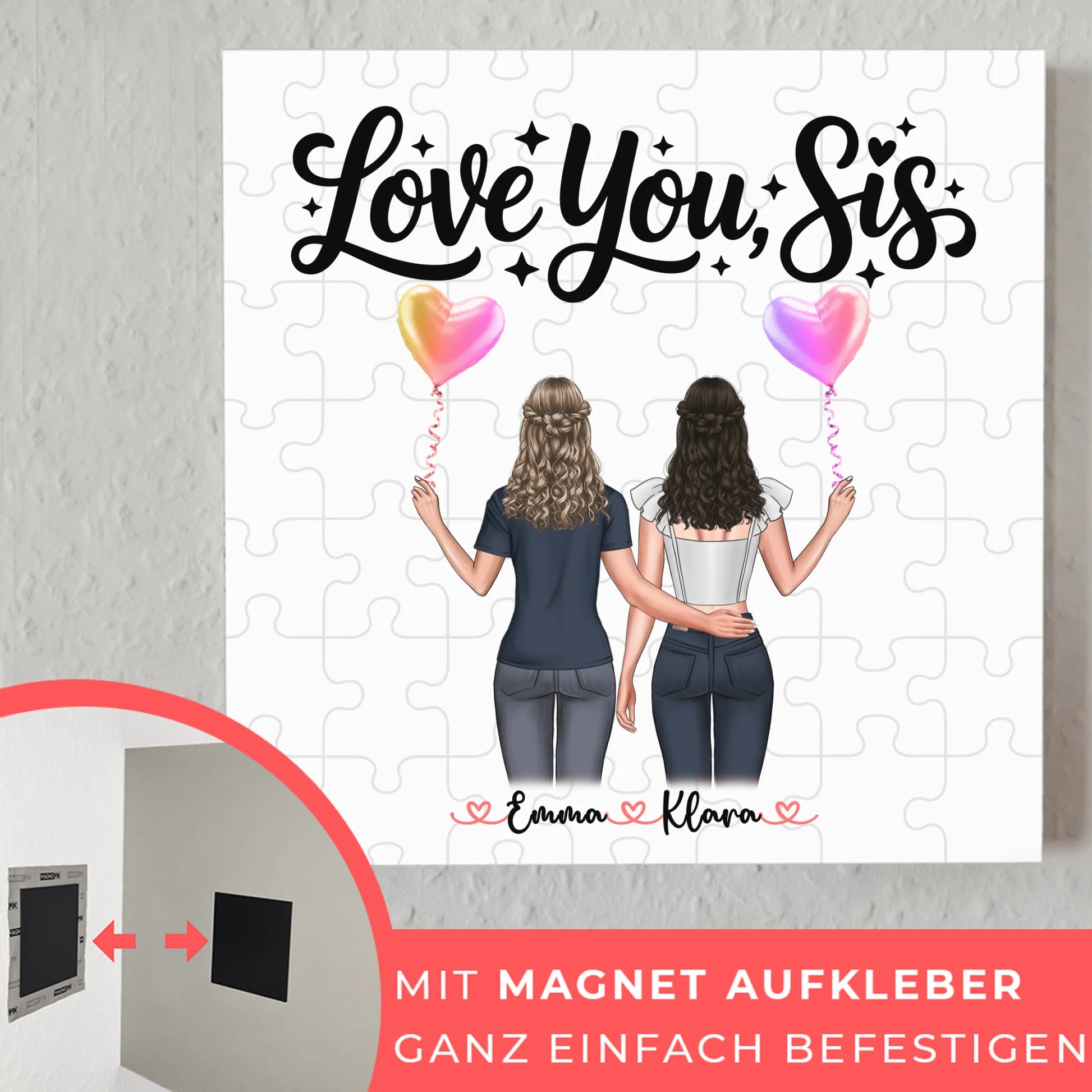 Dieses personalisierte Fotoboard ist das perfekte Geschenk für deine Schwester zum Geburtstag und verbindet emotionale Botschaft mit persönlichem Design. Das Wandbild trägt den schönen Spruch Love you, sis und lässt sich ganz nach deinen Vorstellungen anpassen, so entsteht ein einzigartiges Erinnerungsstück für das Zuhause.