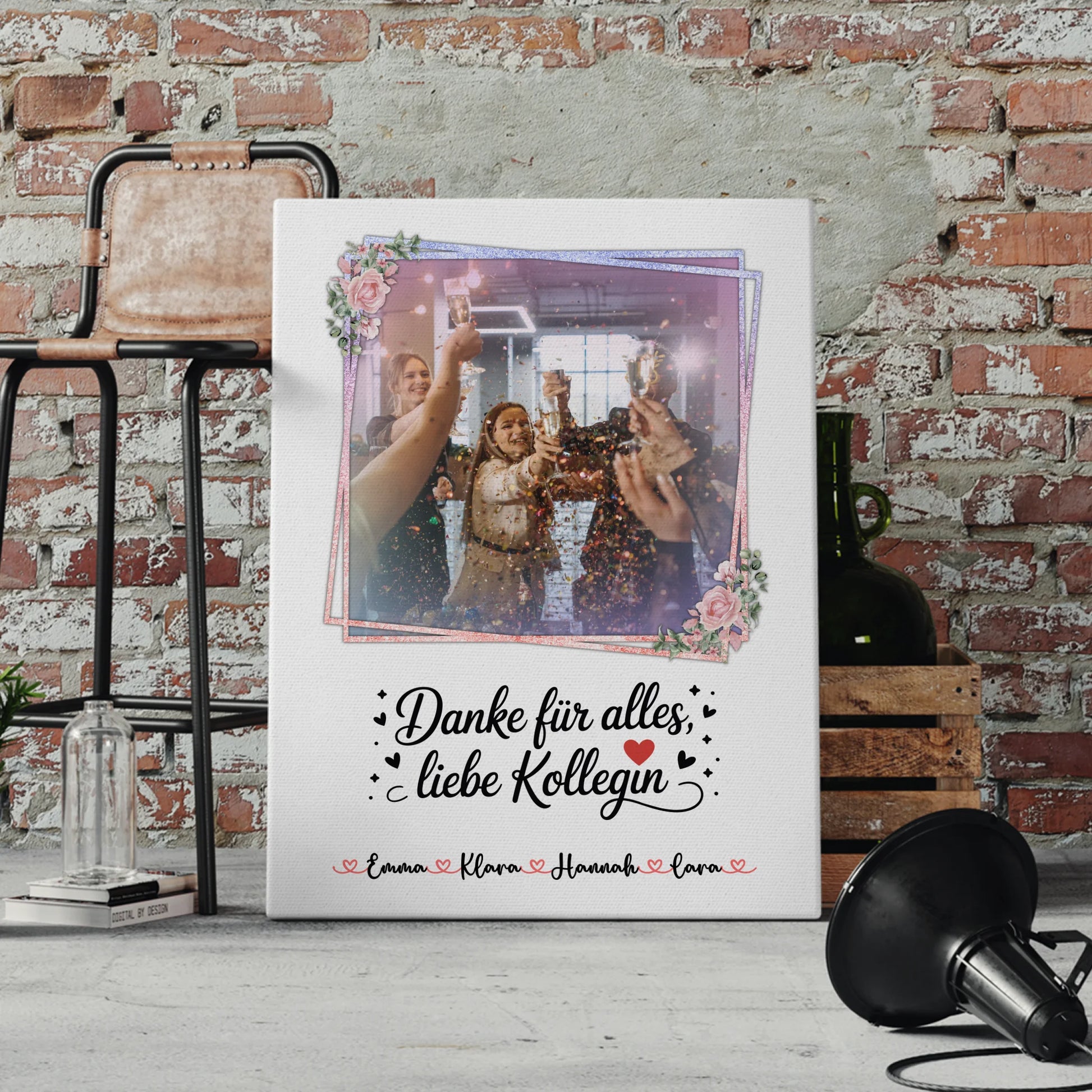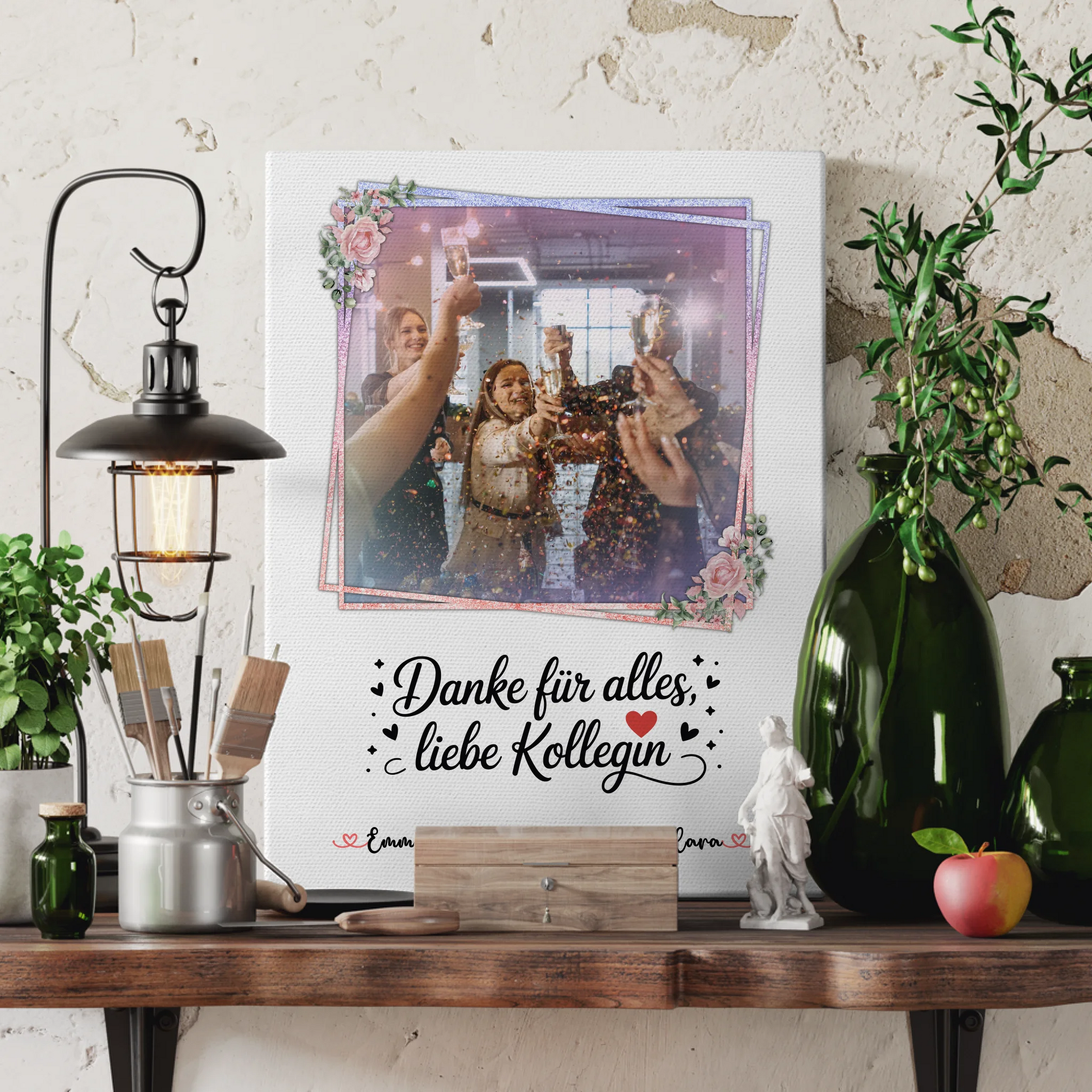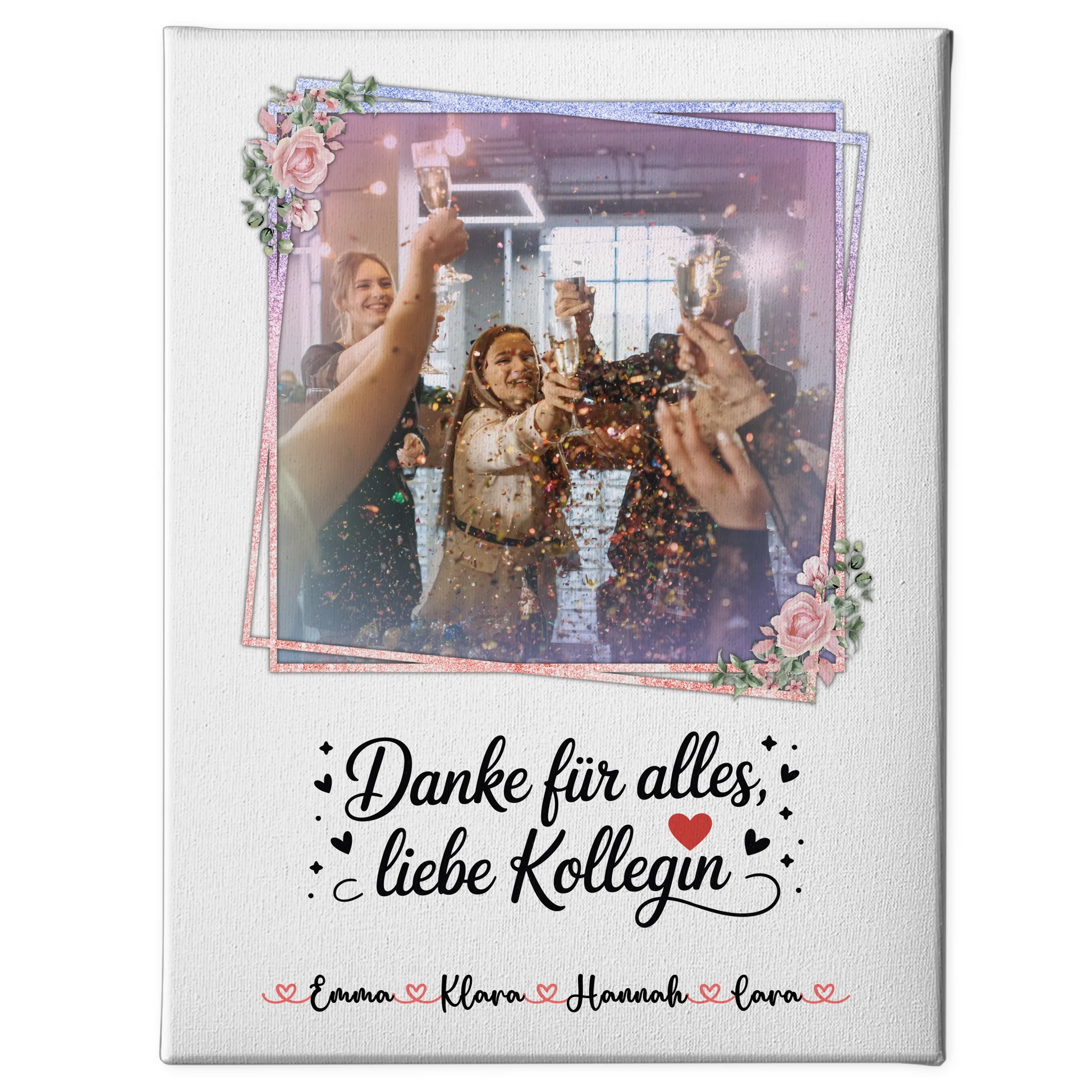 Hochwertiger Druck auf stabiler Leinwand, kräftige und langlebige Farben sowie saubere Kanten sorgen für eine professionelle Optik. Ideal als Abschiedsgeschenk für Kollegin, das Namen und persönliche Fotos stilvoll präsentiert.