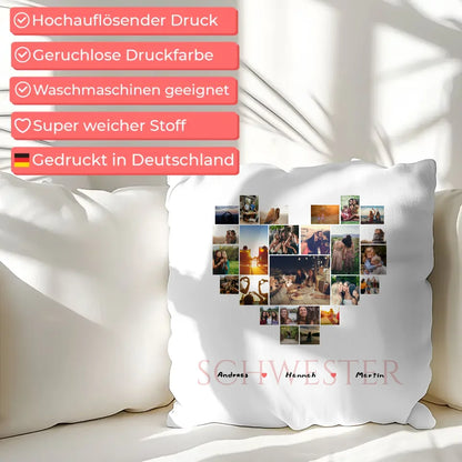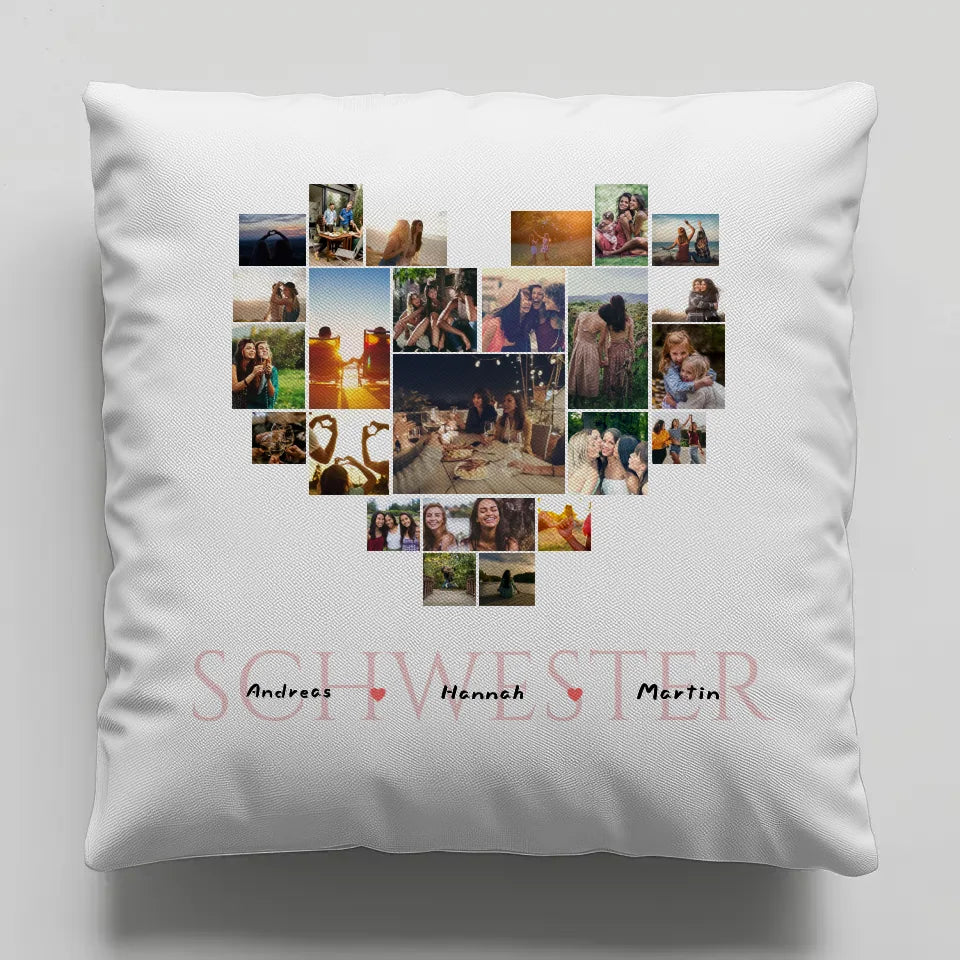 Fotocollage Kissen 24 Fotos & Namen für Schwester mit 24 Fotos