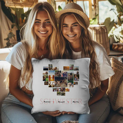 Unser Fotocollage Kissen 24 Fotos & Namen für Schwester mit 24 Fotos