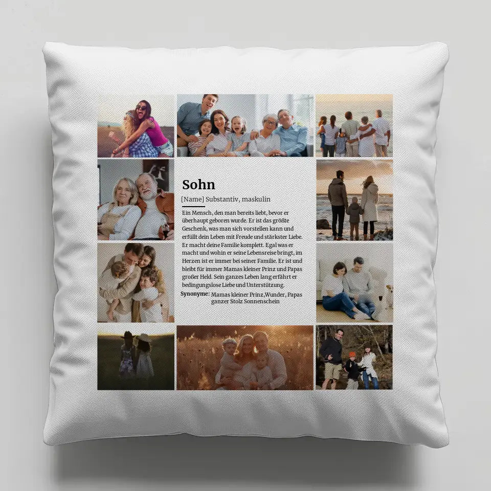 Fotocollage Kissen personalisiert Definition Sohn mit 10 Fotos