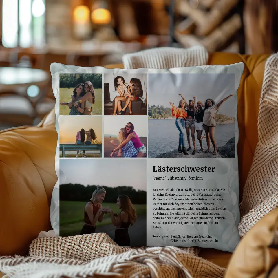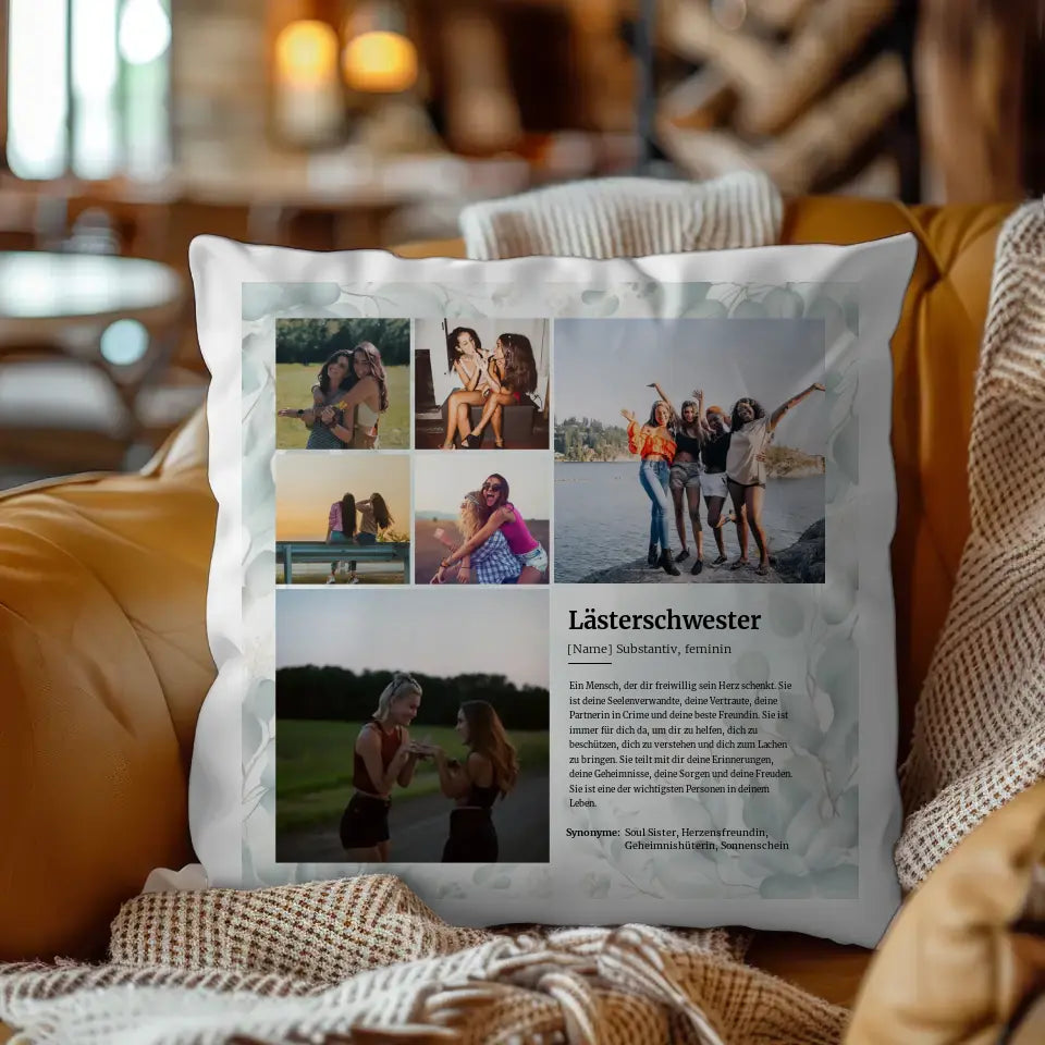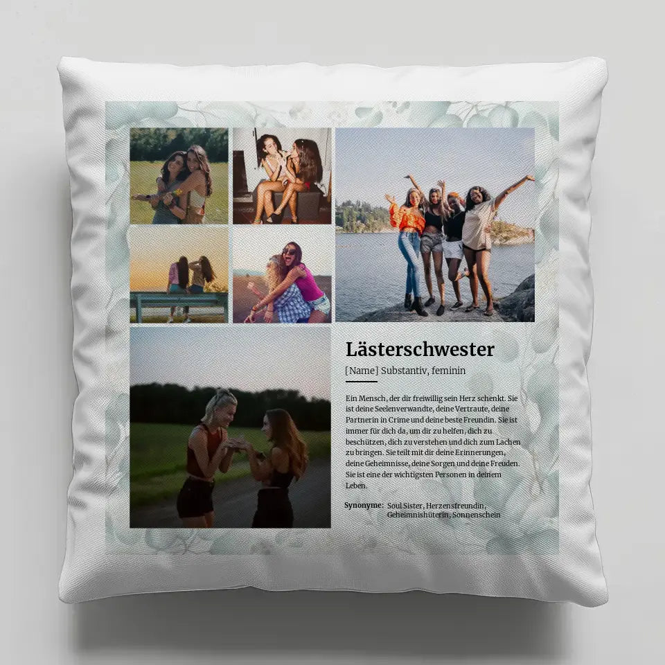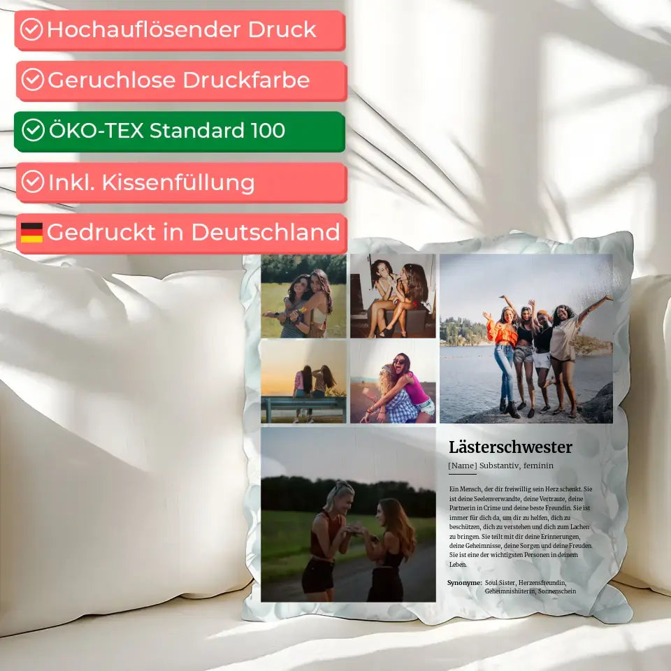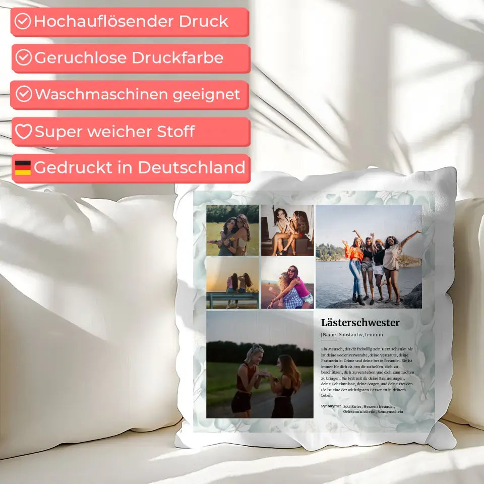 Fotocollage Kissen personalisiert Lästerschwester Definition 6 Fotos