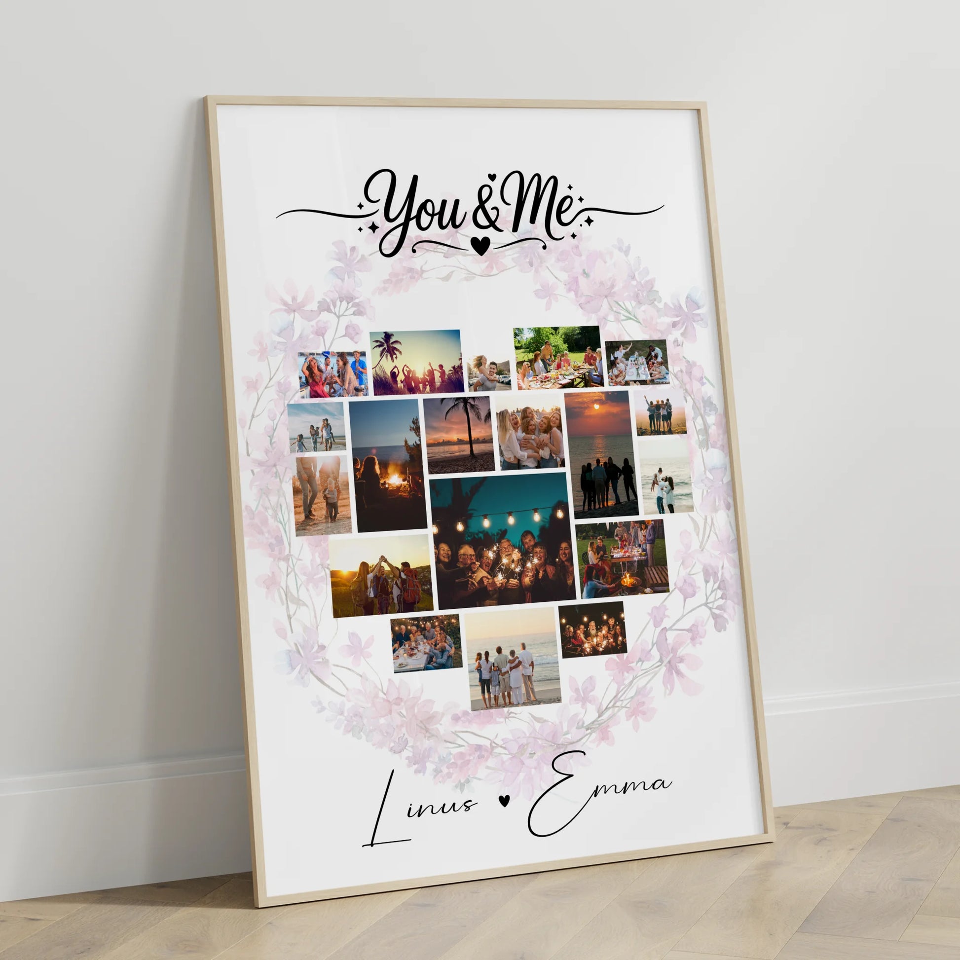 Fotocollage Liebe als Liebes Poster mit 19 Herz Fotos You & Me Persönliches Geschenk