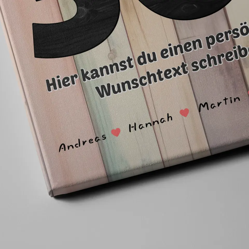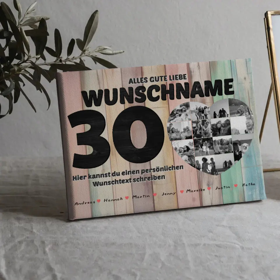 Du kannst bei diesem schönen Design 15 Namen, 14 Fotos, Hintergrundbild & Wunschtext ganz individuell personalisieren.
