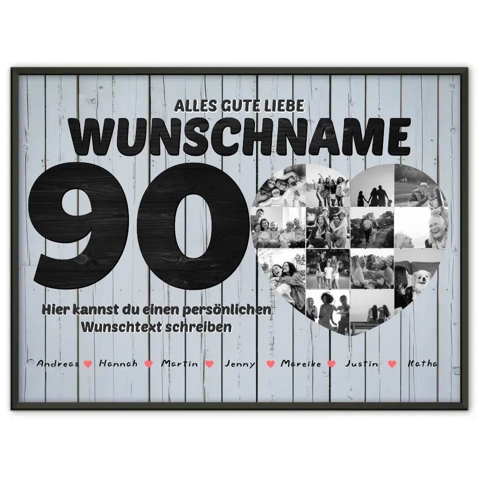 Du würdest gerne etwas einzigartiges schenken? Dann ist Unser Fotocollage personalisiert für Oma zum 90 Geburstag ein wunderschönes personalisiertes Geschenk.