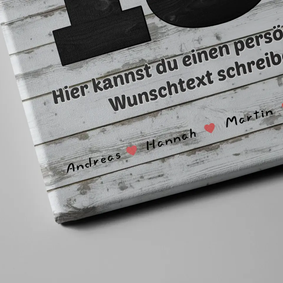 Du kannst bei diesem schönen Design 15 Namen, 14 Fotos, Hintergrundbild & Wunschtext ganz individuell personalisieren.