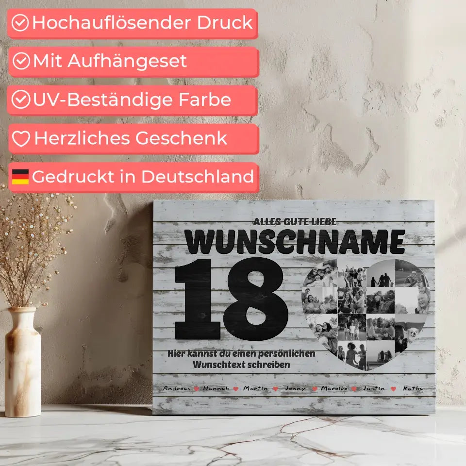 Du magst einzigartige Geschenke? Dann ist Unsere Fotocollage zum 18 Geburstag für Beste Freundin mit 14 Fotos Holz Look ein wunderschönes personalisiertes Geschenk.
