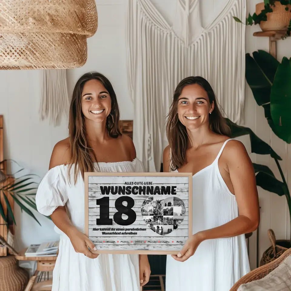 Du würdest gerne etwas einzigartiges schenken? Dann ist Unser Fotocollage zum 18 Geburstag für Beste Freundin mit 14 Fotos Holz Look ein einzigartiges personalisiertes Geschenk.