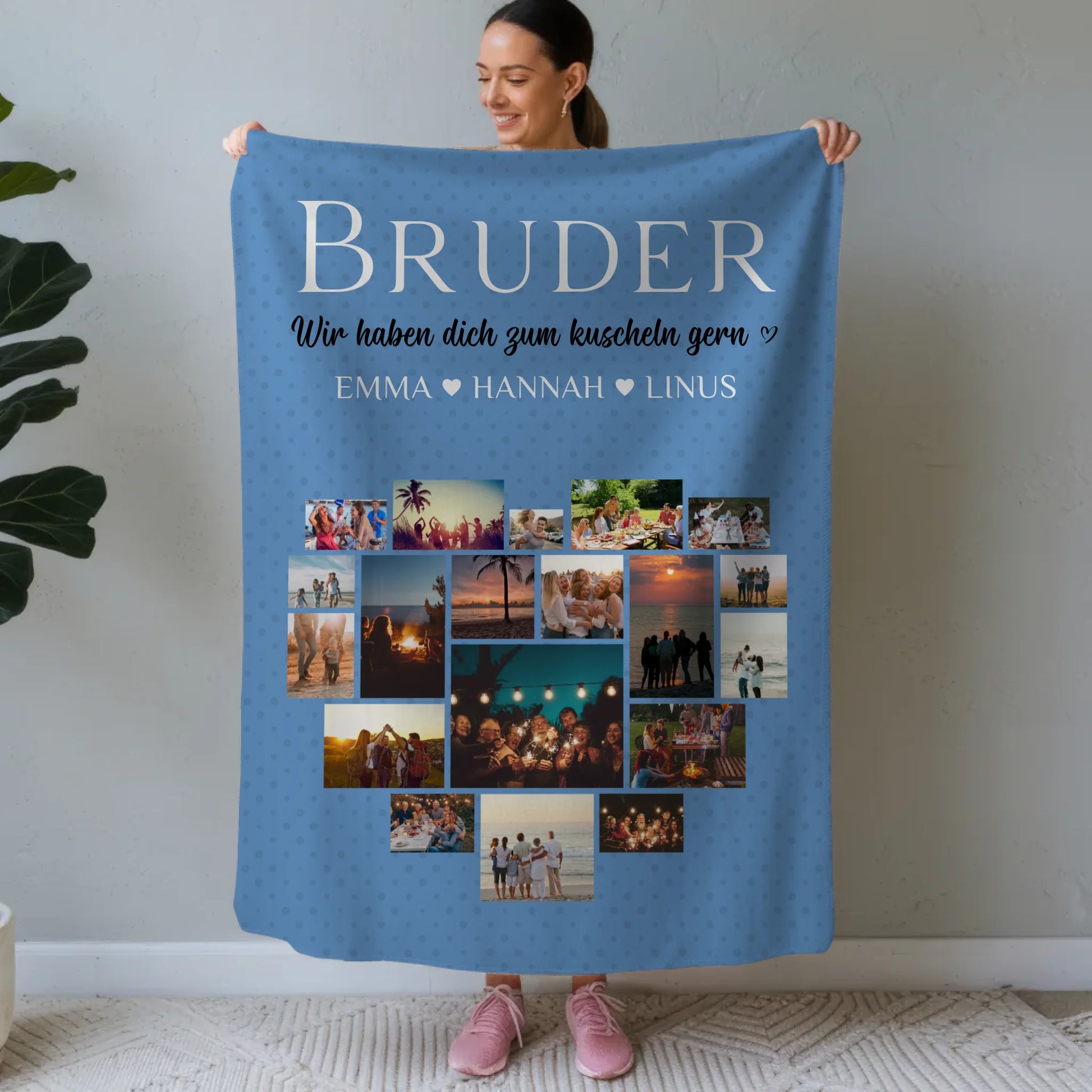 Fotodecke Fotocollage Bruder Zum kuscheln gern Geschenk – Deine persönliche Kuscheldecke
