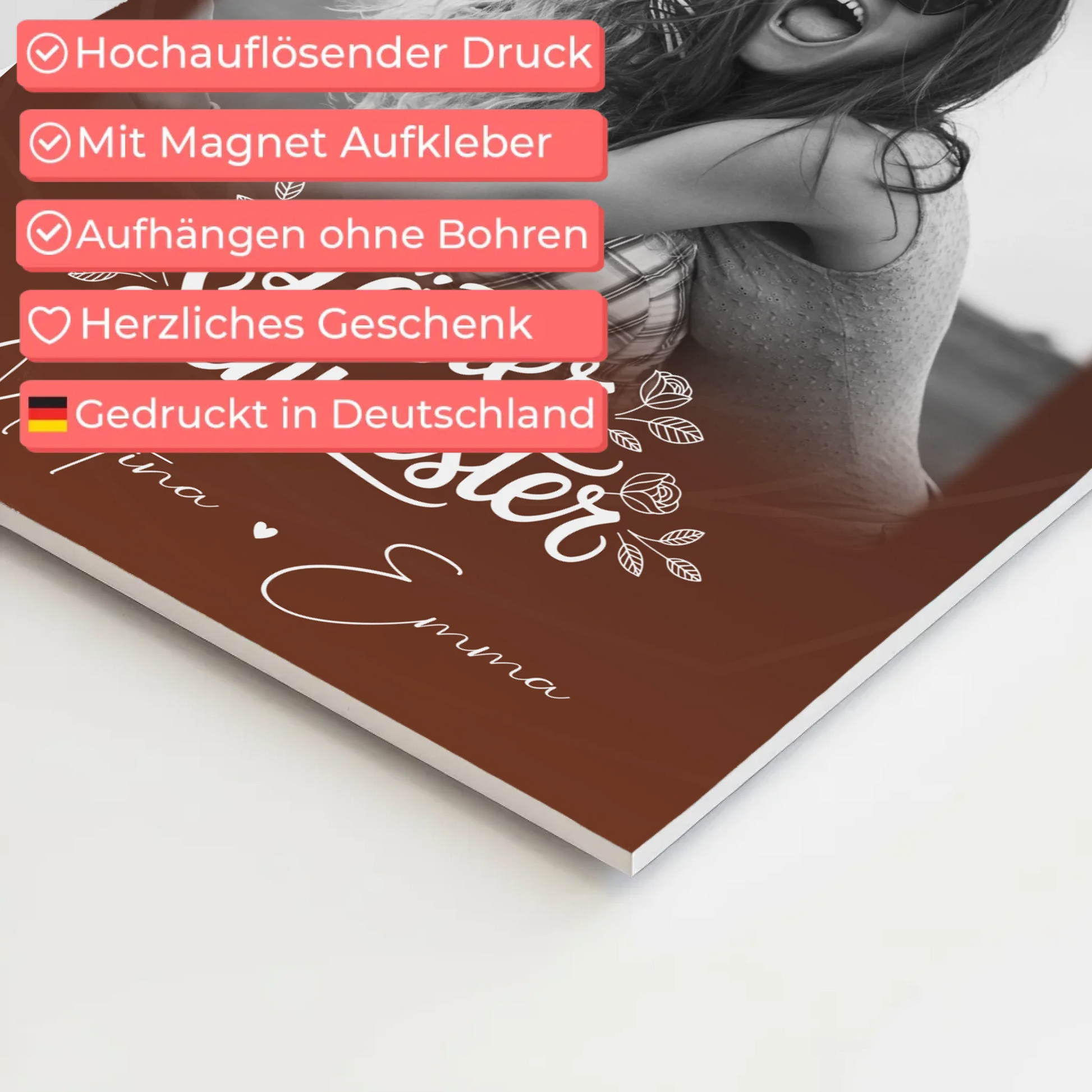 Überrasche deine beste Freundin mit dem einzigartigen und persönlichen Geschenk „Freundinnen Bild Personalisiert mit 4 Fotos und 1 Kleines Herz Foto Danke Mama für alles“. Dieses individuell gestaltete Poster, Leinwand oder Kissen ist die ideale Wahl, um deine Wertschätzung und Liebe zu zeigen. Du kannst dieses Geschenk ganz nach deinen Wünschen personalisieren: Füge bis zu 5 Fotos hinzu, schreibe einen eigenen Spruch oder Wunschtext und füge die Namen deiner besten Freundin ein. Das Design trägt den schönen Spruch: „Danke Mama, für alles, was du tust und alles, was du bist“, was besonders bei Geburtstagsfeiern eine emotionale Note setzt. Dieses personalisierte Geschenk ist perfekt geeignet, um deiner Freundin zum Geburtstag eine besondere Freude zu bereiten und ihr zu zeigen, wie viel sie dir bedeutet. Es ist ein einzigartiges Andenken, das sie immer an eure Freundschaft erinnert. Überrasche sie mit einem liebevoll gestalteten Geschenk, das ihre Persönlichkeit widerspiegelt und ihre Bedeutung in deinem Leben unterstreicht. Bestelle jetzt dein personalisiertes „Freundinnen Bild Personalisiert mit 4 Fotos und 1 Kleines Herz Foto Danke Mama für alles“ und mache den Geburtstag deiner besten Freundin unvergesslich!