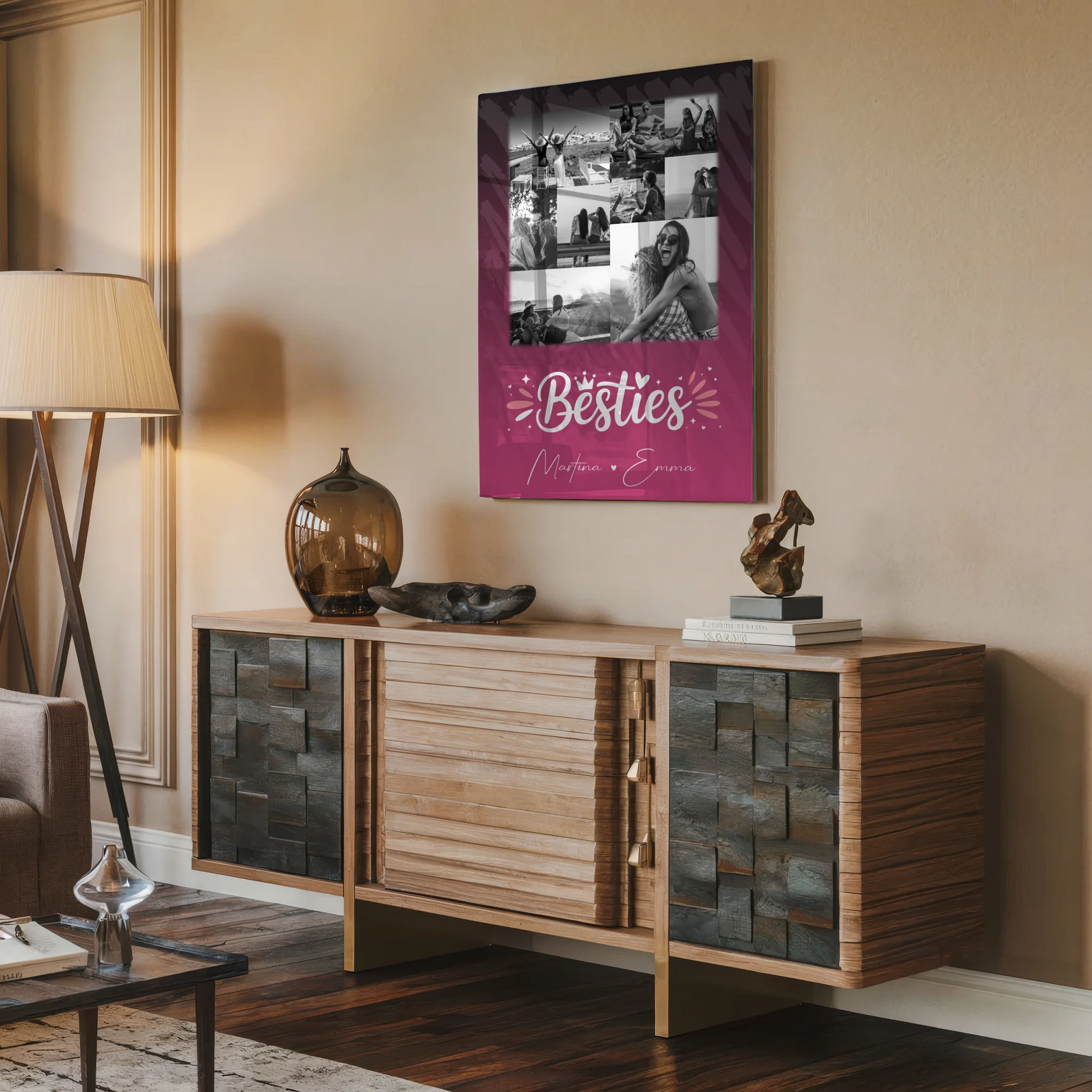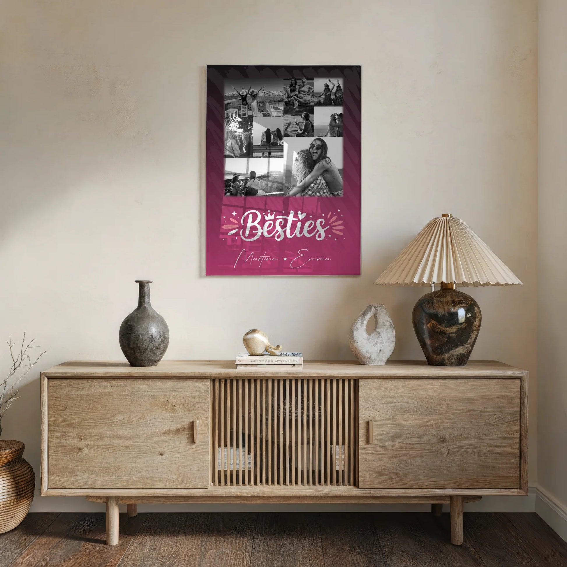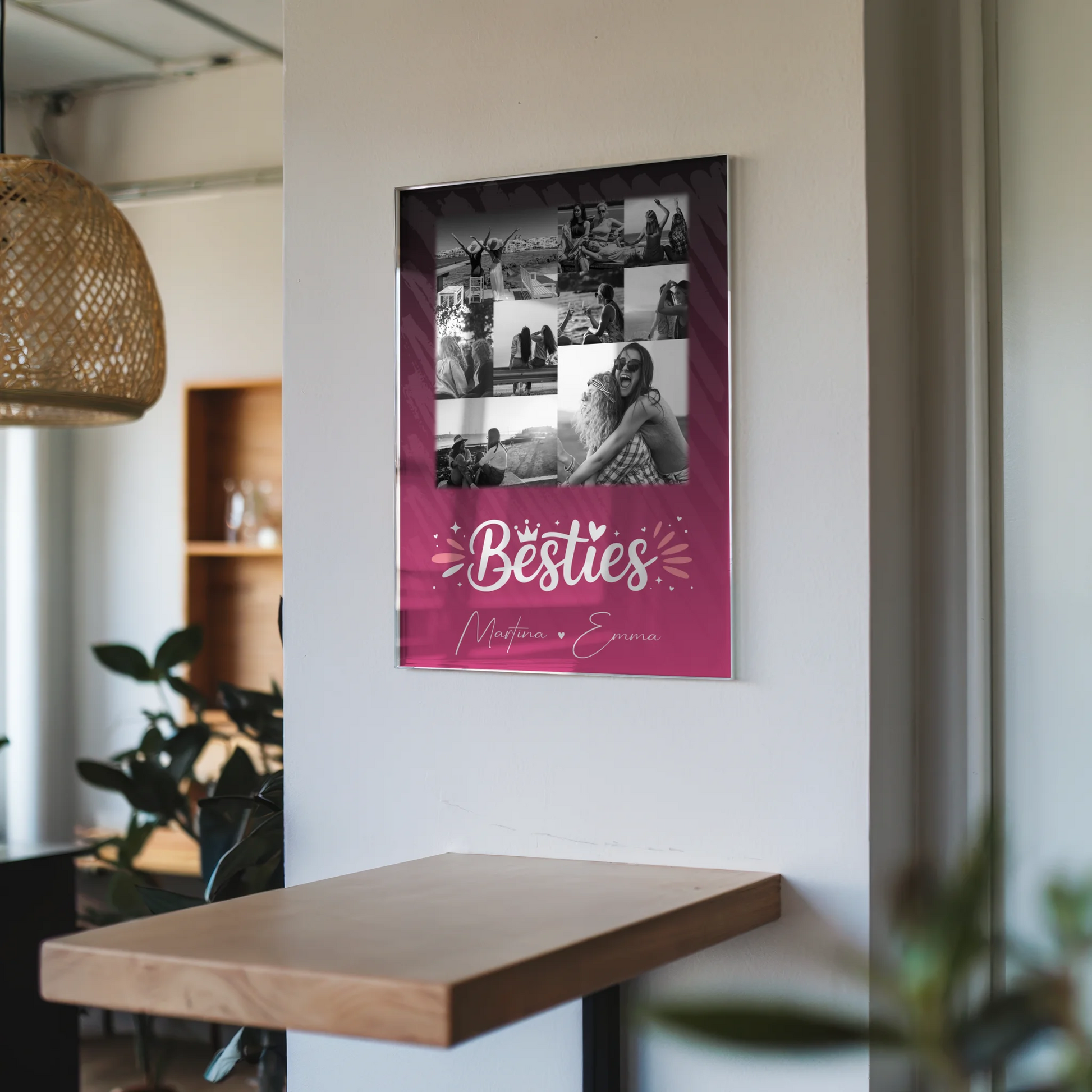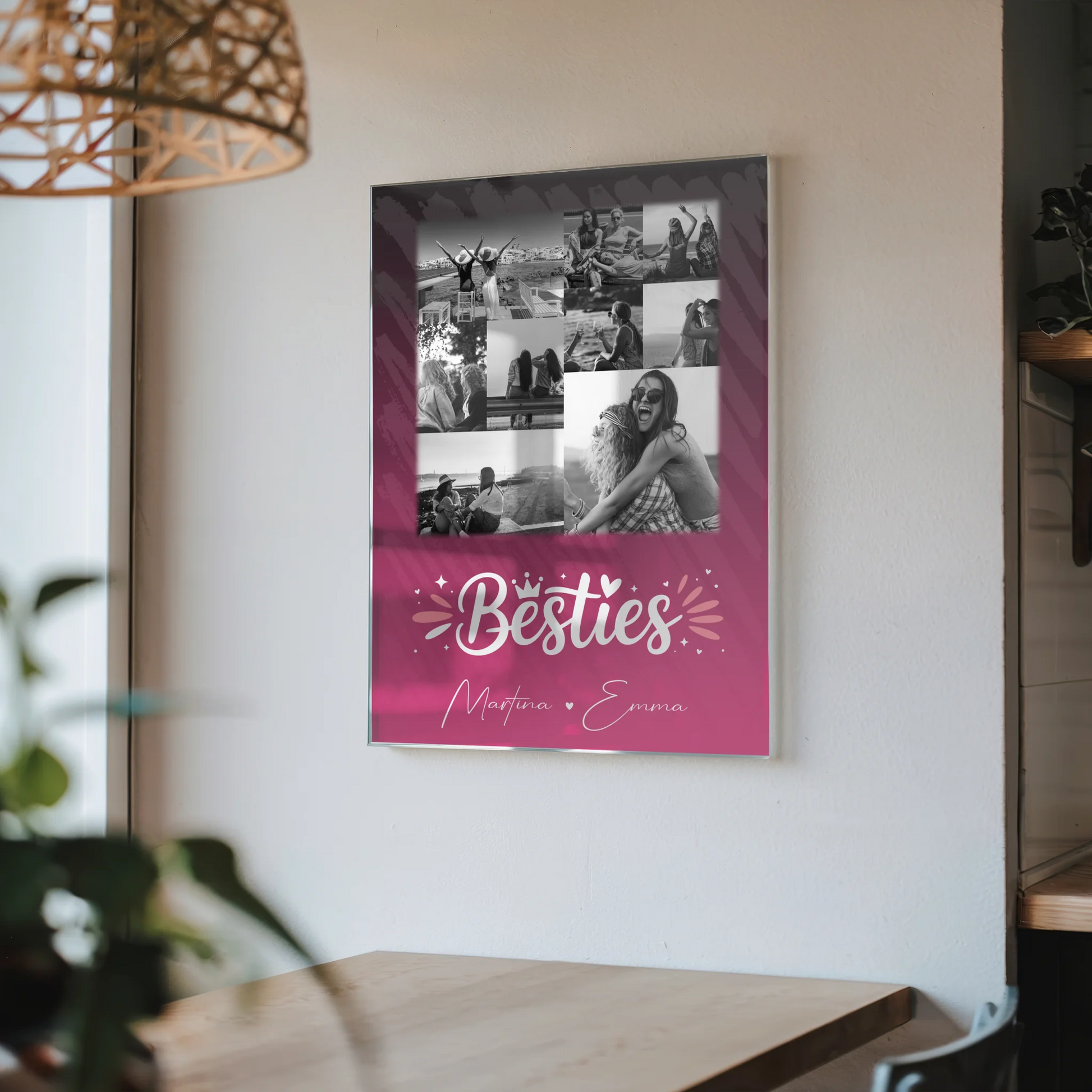 Überrasche deine beste Freundin mit einem einzigartigen und persönlichen Geschenk, das garantiert für Freude sorgt. Das Freundinnen Bild Personalisiert mit 9 Fotos Du komisch Ich komisch Geht Schief ist das perfekte Präsent zum Geburtstag, um eure besondere Freundschaft zu feiern. Du kannst dieses liebevolle Geschenk ganz individuell gestalten, indem du 9 Fotos, einen eigenen Spruch oder Wunschtext sowie die Namen deiner besten Freundin hinzufügst. Das Design zeigt den charmanten Spruch: „Du bist komisch. Ich bin komisch. Kann nur schief gehen“, der eure einzigartige Verbindung widerspiegelt. Dieses personalisierte Geschenk ist ideal für alle, die ihrer besten Freundin eine persönliche Erinnerung schenken möchten. Es eignet sich hervorragend als Poster, Leinwand, Tasse oder Kissen und macht jeden Geburtstag unvergesslich. Zeige deiner besten Freundin, wie viel sie dir bedeutet, mit einem individuell gestalteten Geschenk, das garantiert für Freude sorgt. Bestelle jetzt dein personalisiertes Freundinnen Geschenk und mache den besonderen Tag deiner besten Freundin noch schöner!