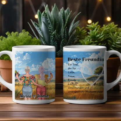 Du kannst bei diesem schönen Design 2 Clipart Freundinnen, Namen, Hintergrundbild & Eigener Spruch oder Wunschtext personalisieren.