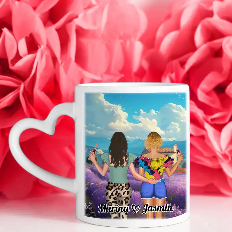 Du möchtest etwas einzigartiges verschenken? Dann ist unsere Freundschaftstassen 2 Freundinnen Frankreich Provence Läster Schwester das perfekte personalisierbare Geschenk.