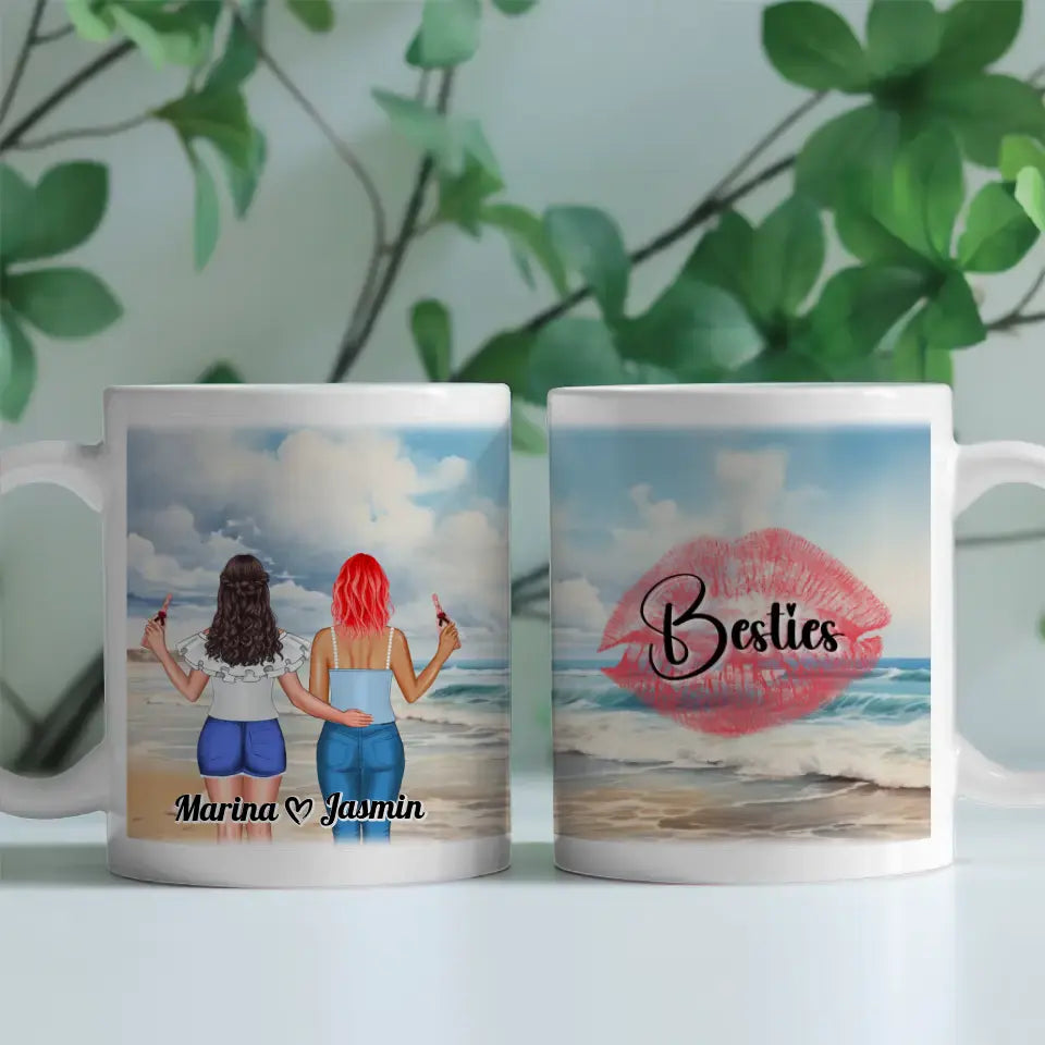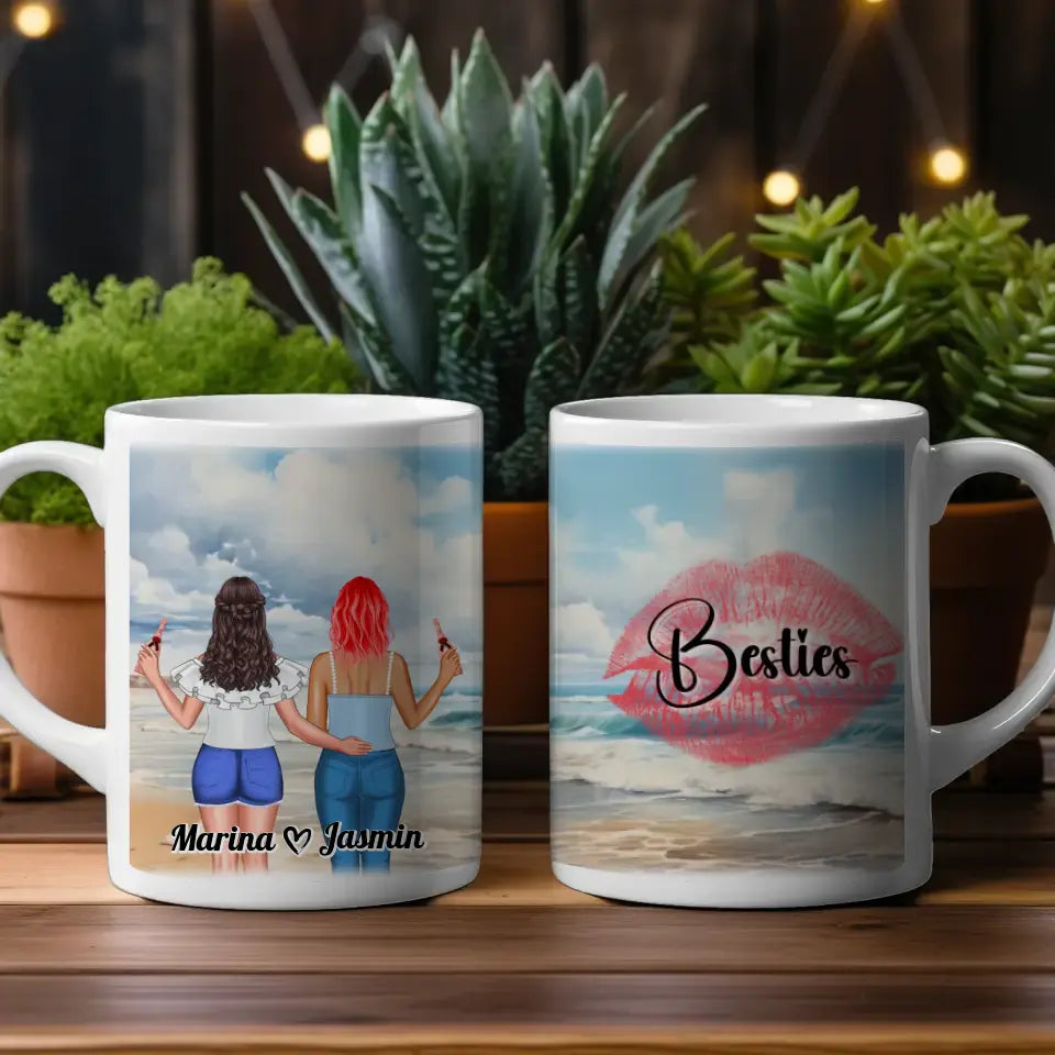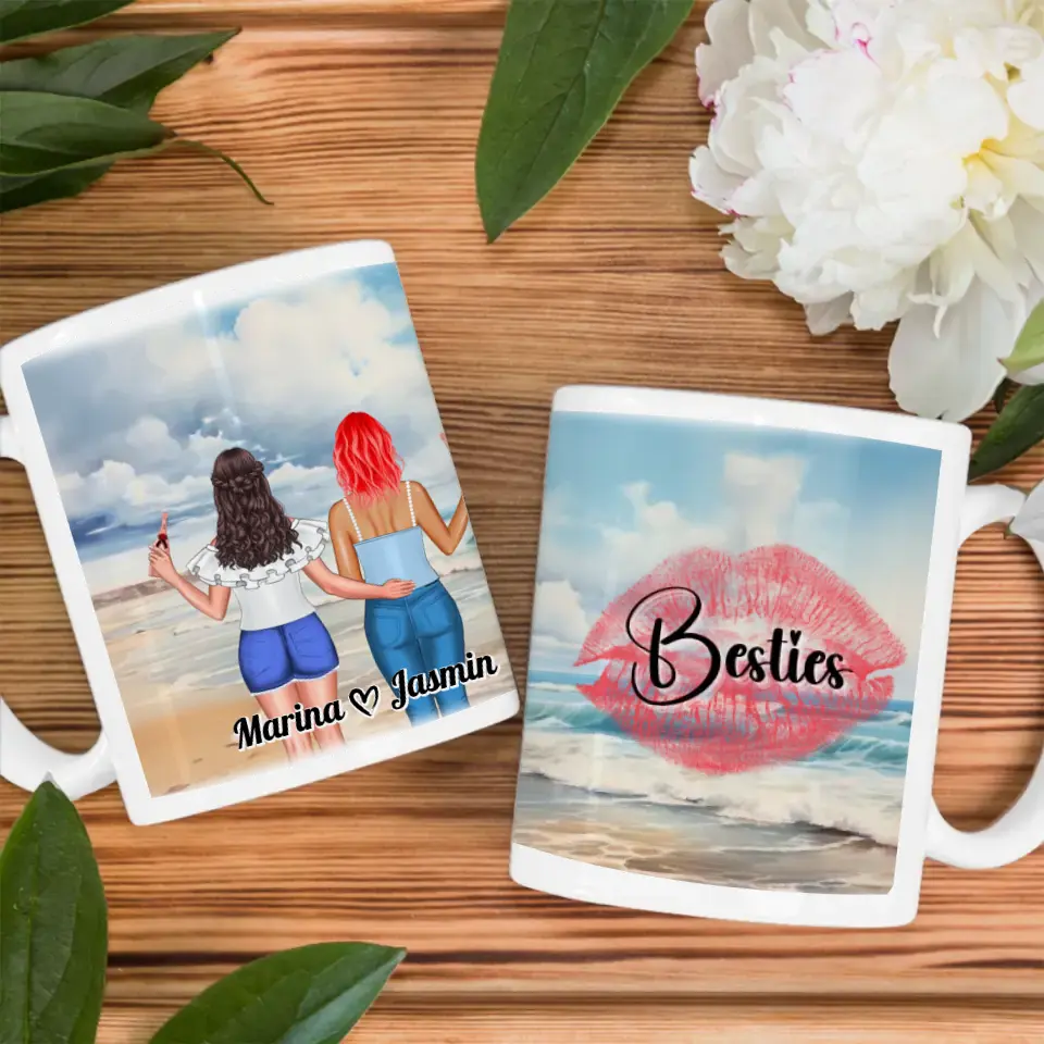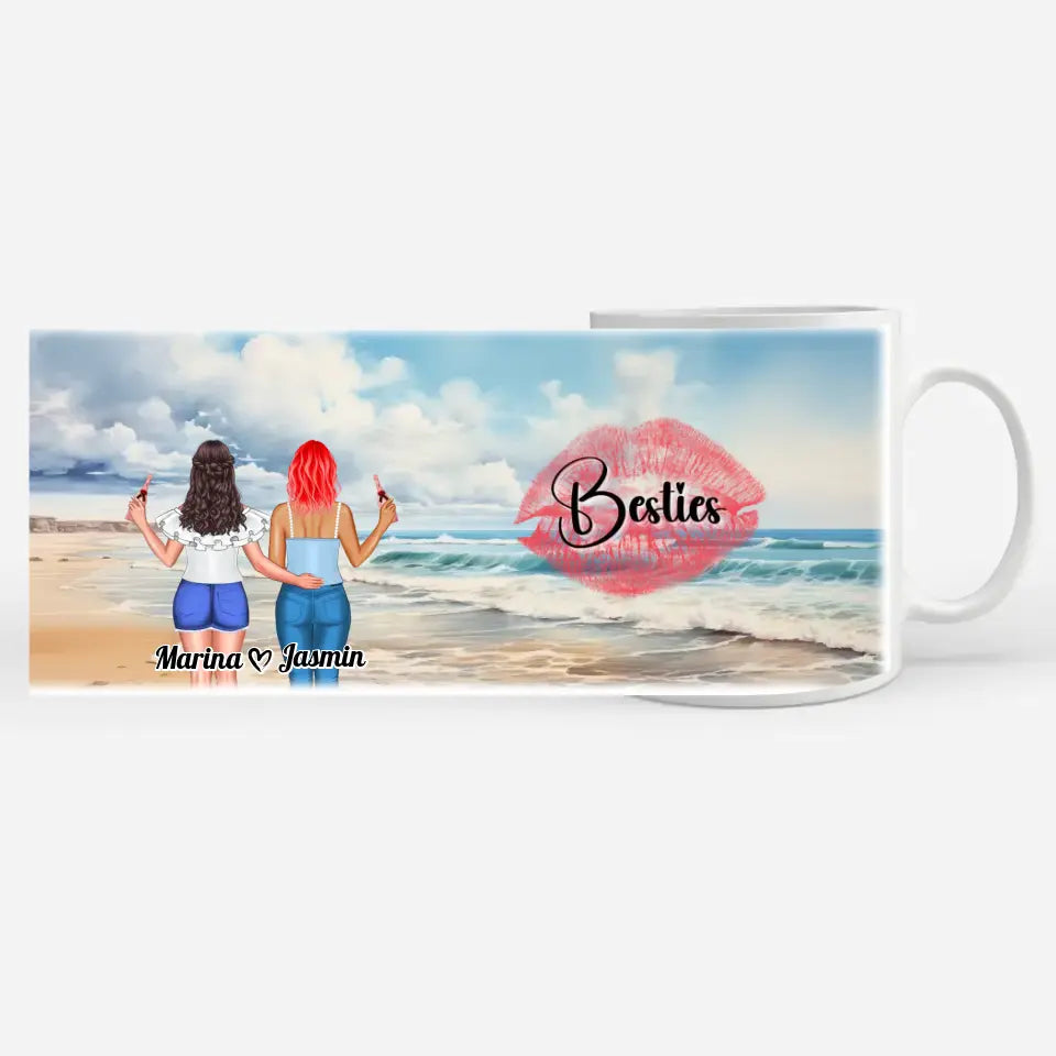 Du suchst ein schönes und individuelles Geschenk? Dann ist unsere Freundschaftstassen 2 Freundinnen Strand und Meer Besties das perfekte personalisierbare Geschenk.